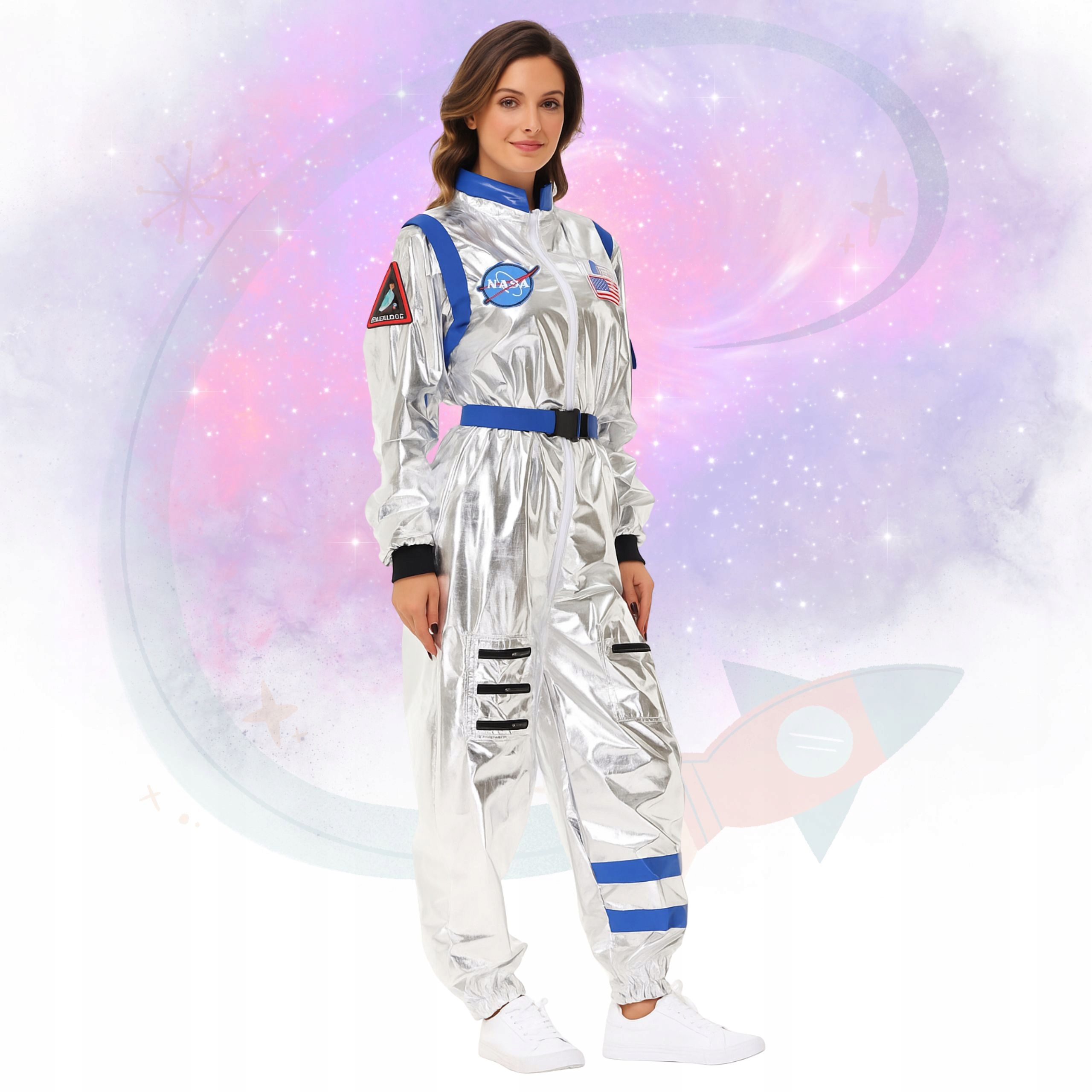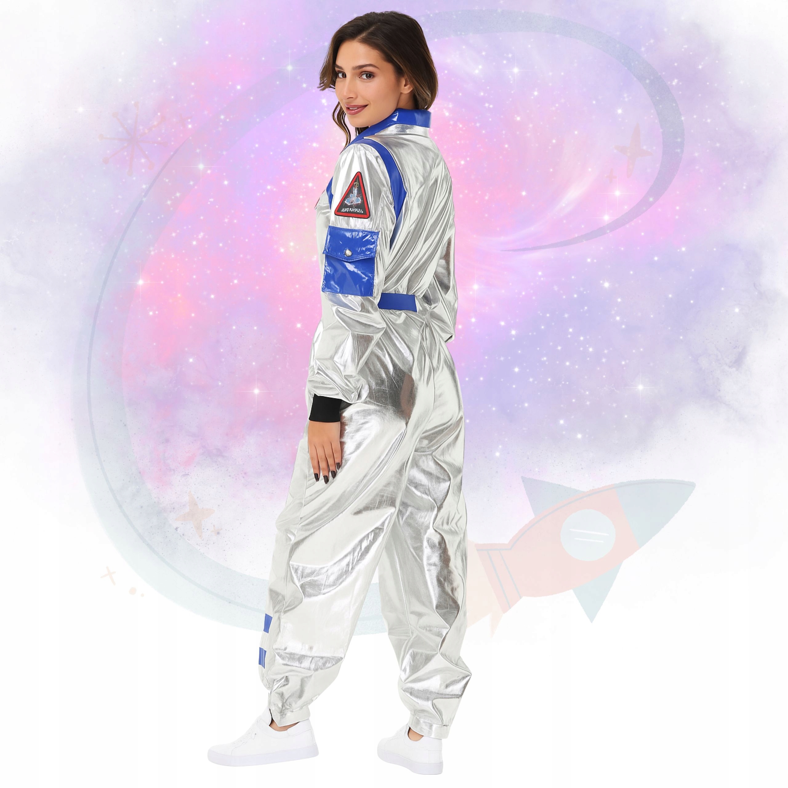 ✨ Блестящий материал, реалистичные нашивки и изысканные детали делают его похожим на костюм прямиком из миссии НАСА.