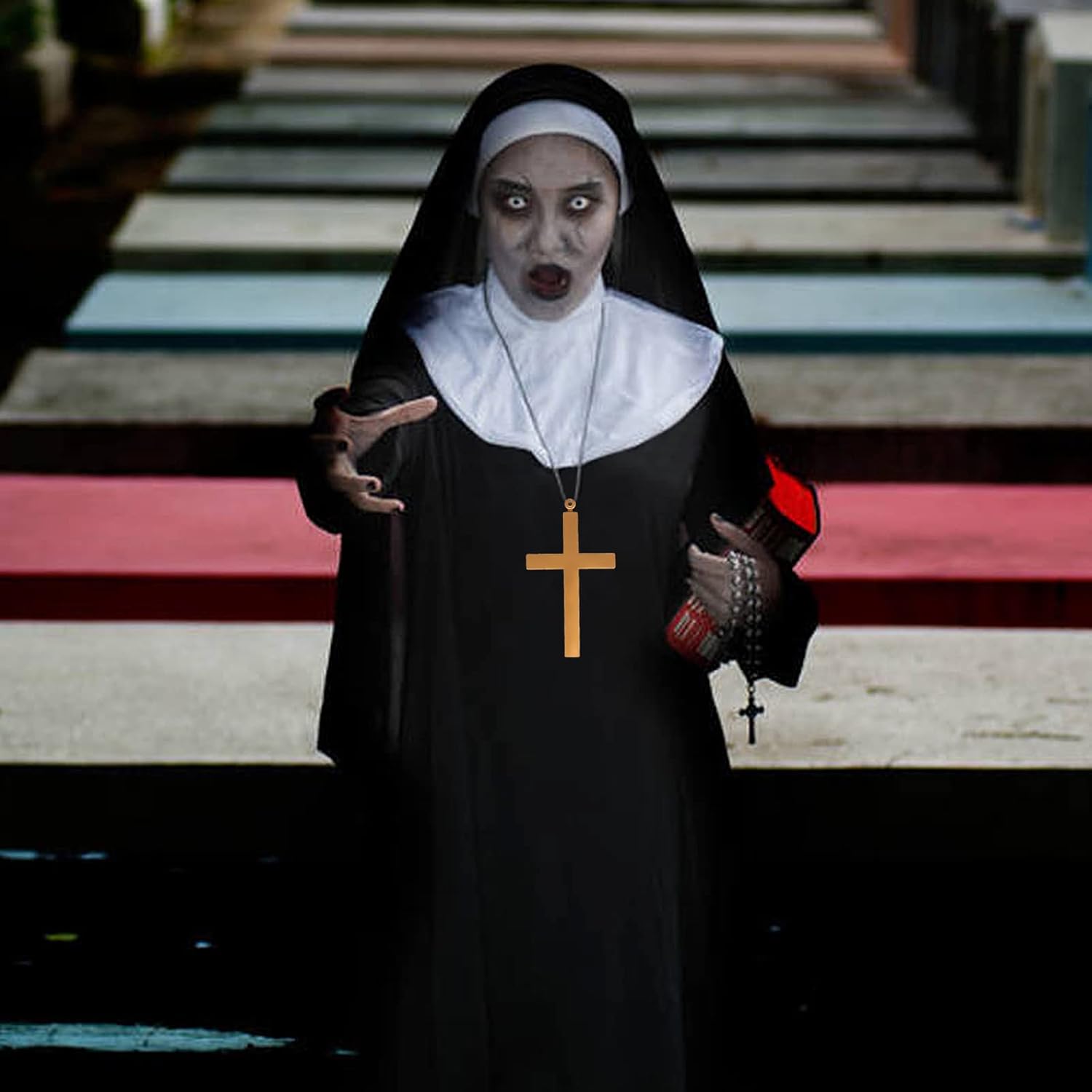 ⏩ Комплект монахини — это практичный и удобный костюм, который идеально подходит для тематических вечеринок, карнавальных балов, театральных представлений и мероприятий в честь Хэллоуина.