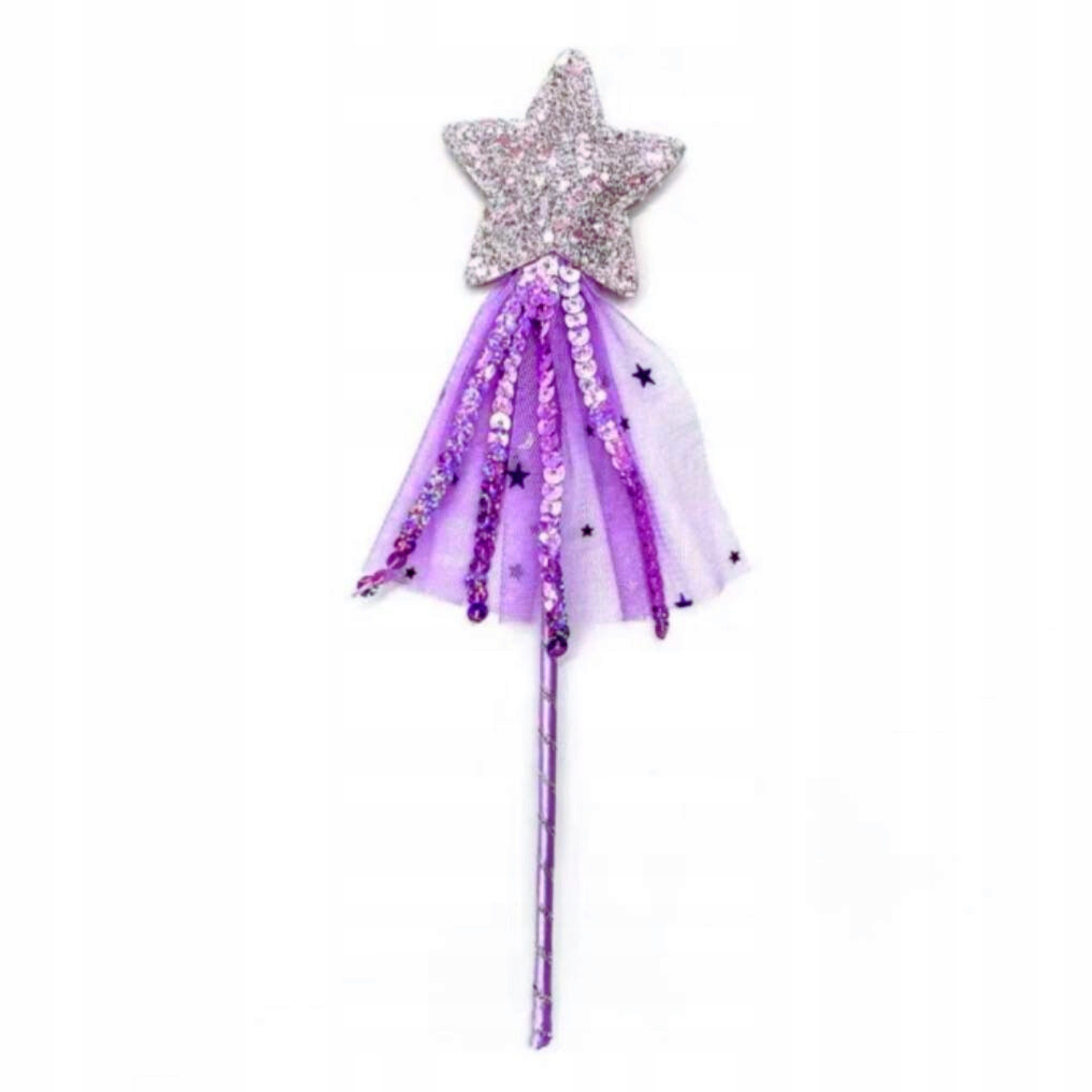 Палочка отделана серебряная блестящая переливающаяся звезда, тюль, украшенный пайетками и звездочками внизу звезды.