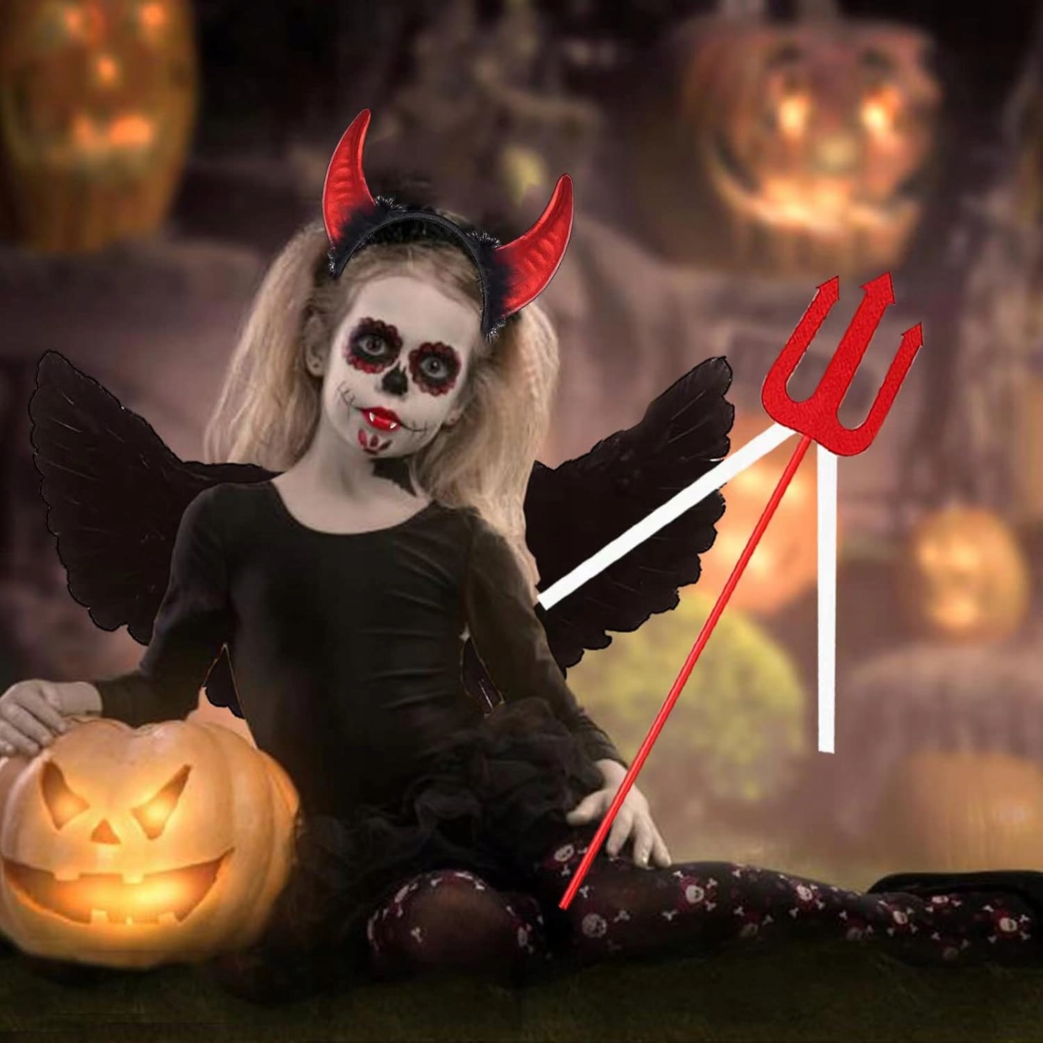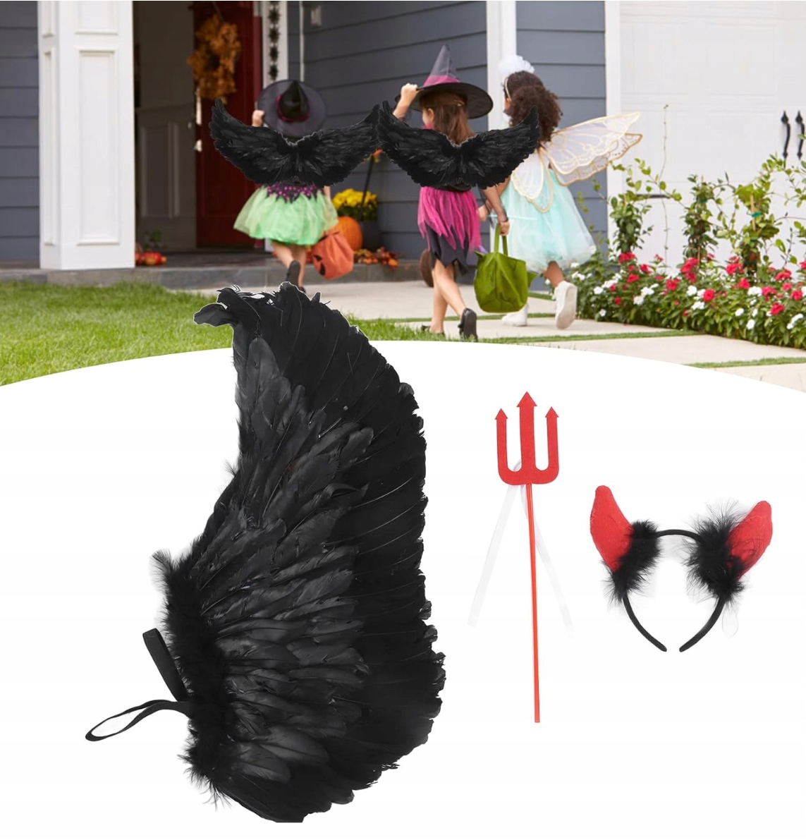 КОСТЮМ ДИЯВОЛА НА ХЕЛОВІН РОГИ ДИЯВОЛА КРИЛА ДИЯВОЛА 80x40 НАБІР ВИЛ