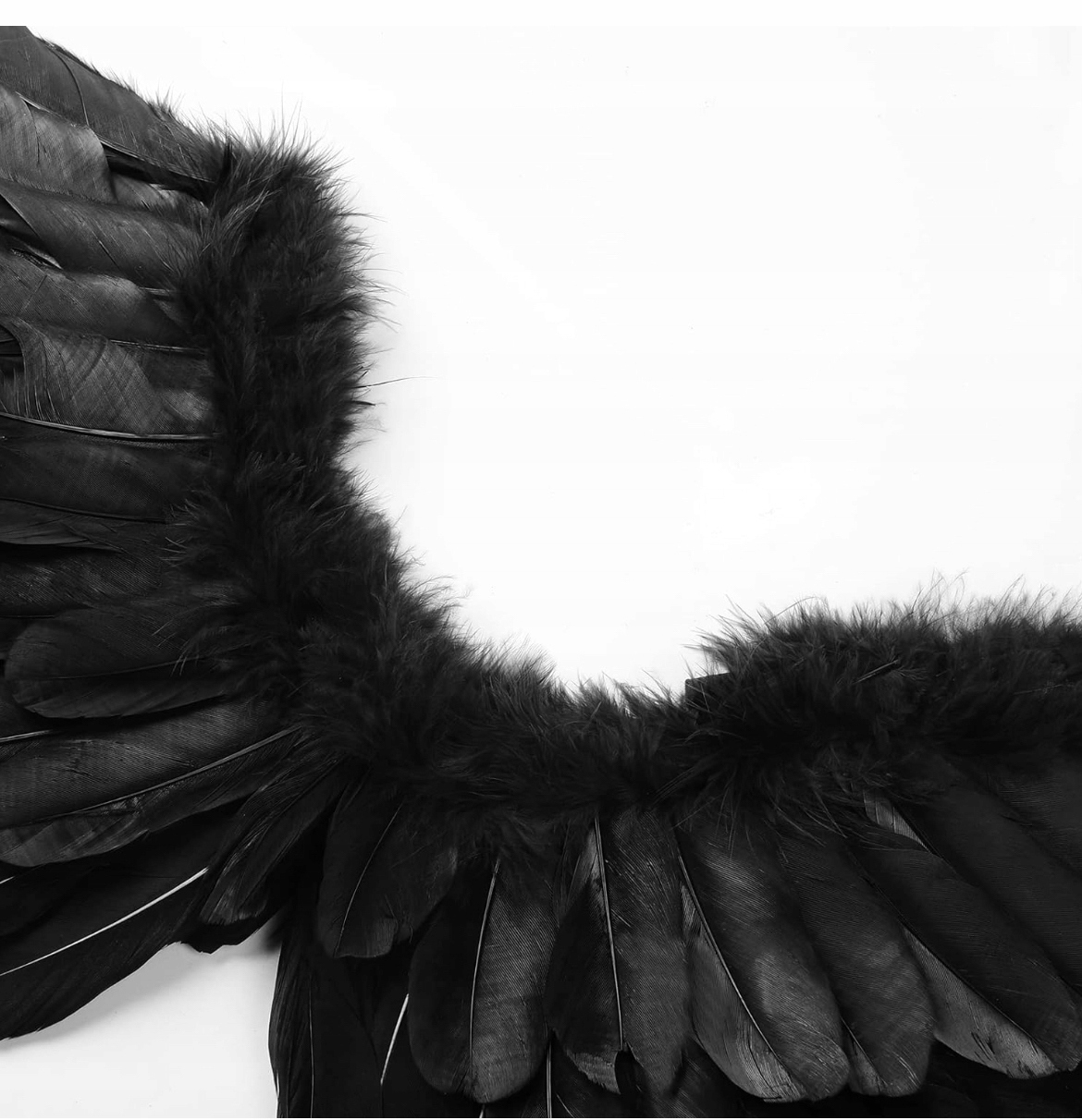 ✅ Крылья: красивые большие крылья, из настоящих перьев черного цвета, легко надеваются на резинки, универсальный размер