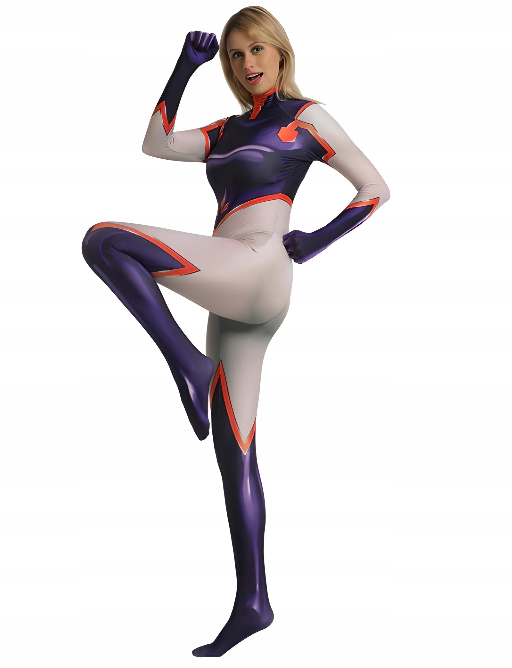 Цельный Костюм Ю Такеямы в бело-фиолетовом цвете. Хорошо сшит, слегка эластичен, застегивается на молнию. Благодаря нашему предложению вы станете героиней My Hero Academia.