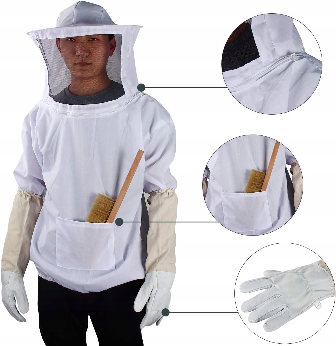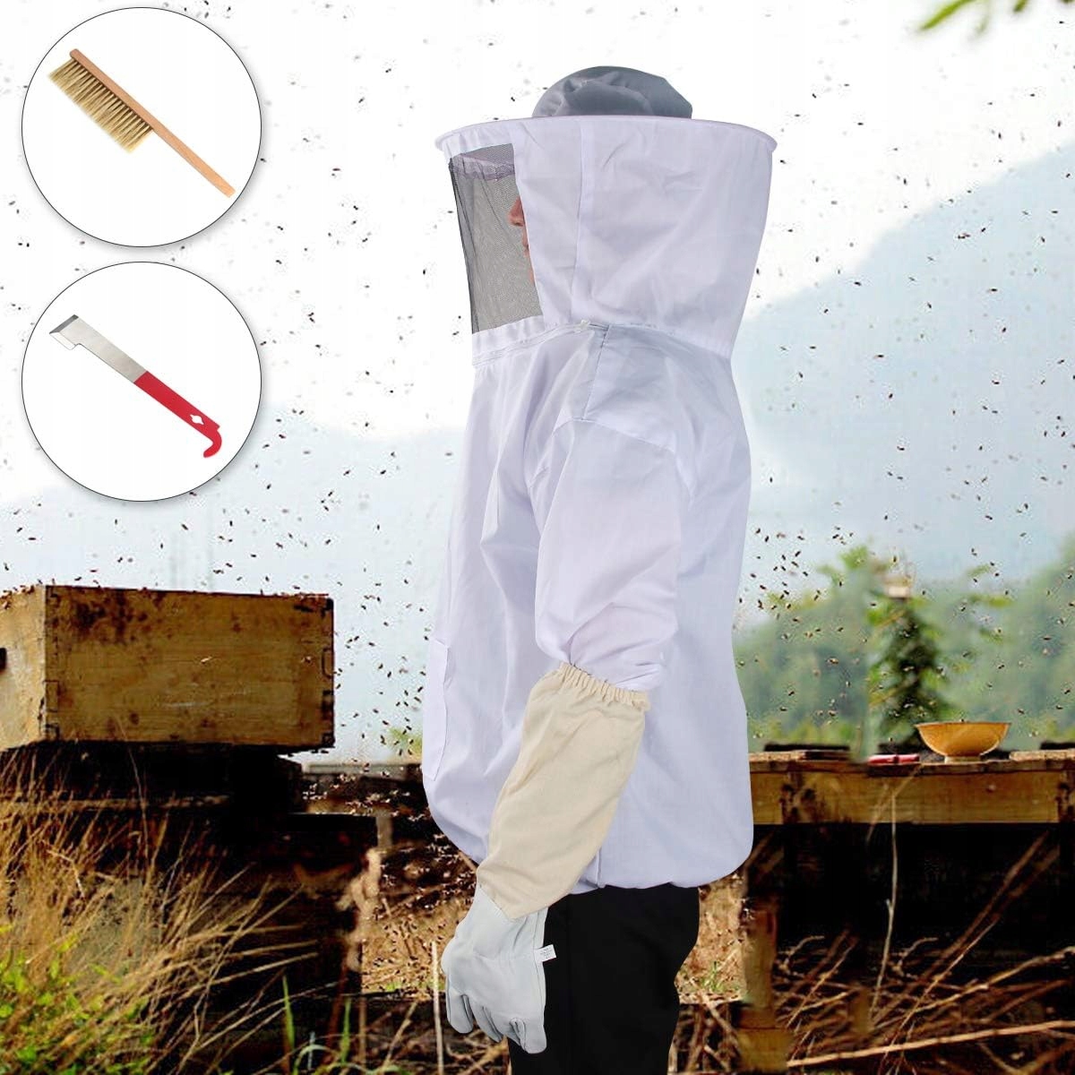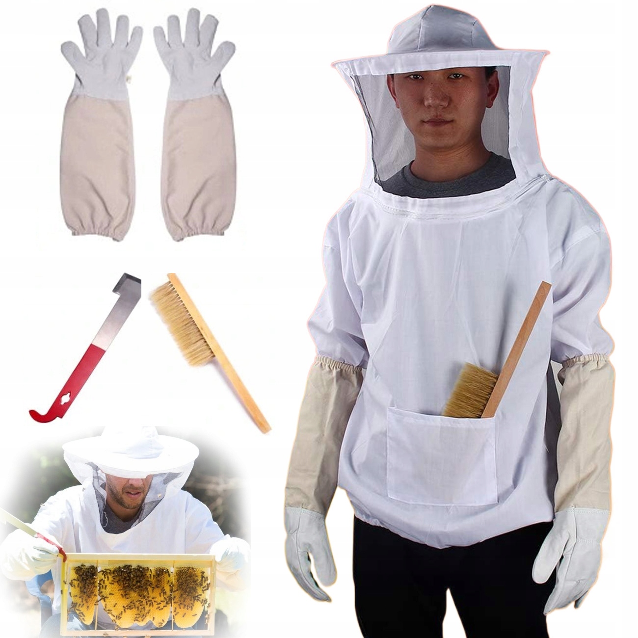 Пчеловодственный костюм с шляпными перчатками щеткой инструменты белый набор