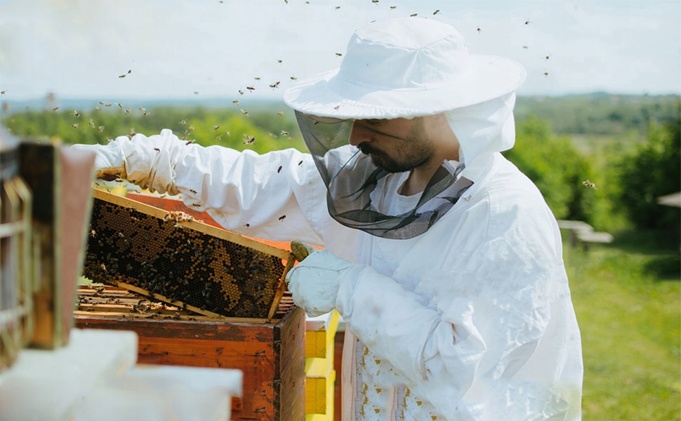 - Рукава и дно пчеловодческого комбинезона были разработаны для эффективного предотвращения въезда пчел Пчелы, удобные и практичные