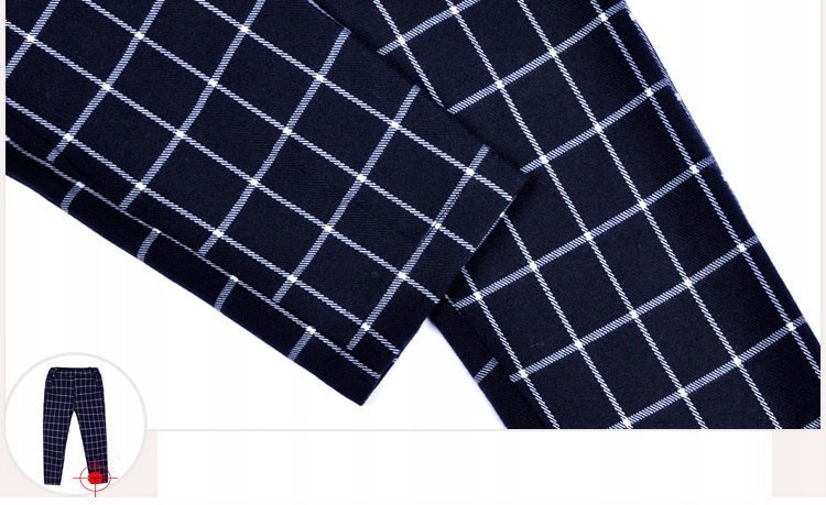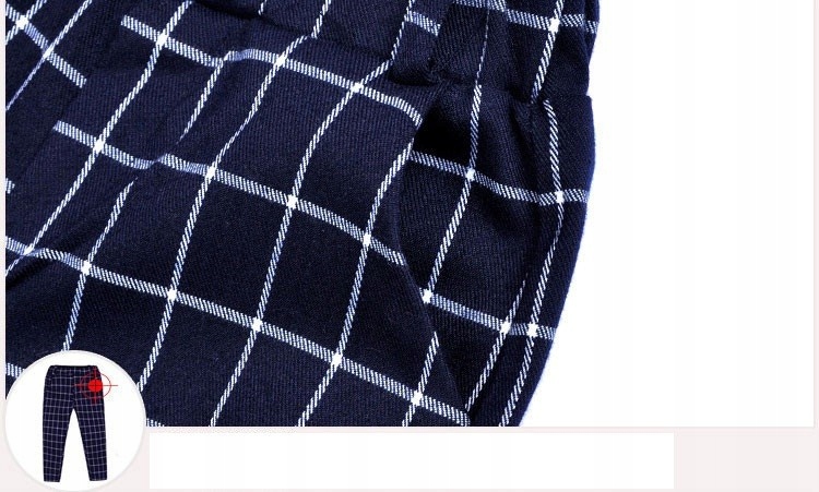 Брюки выполнены из мягкого клетчатого материала с карманами.