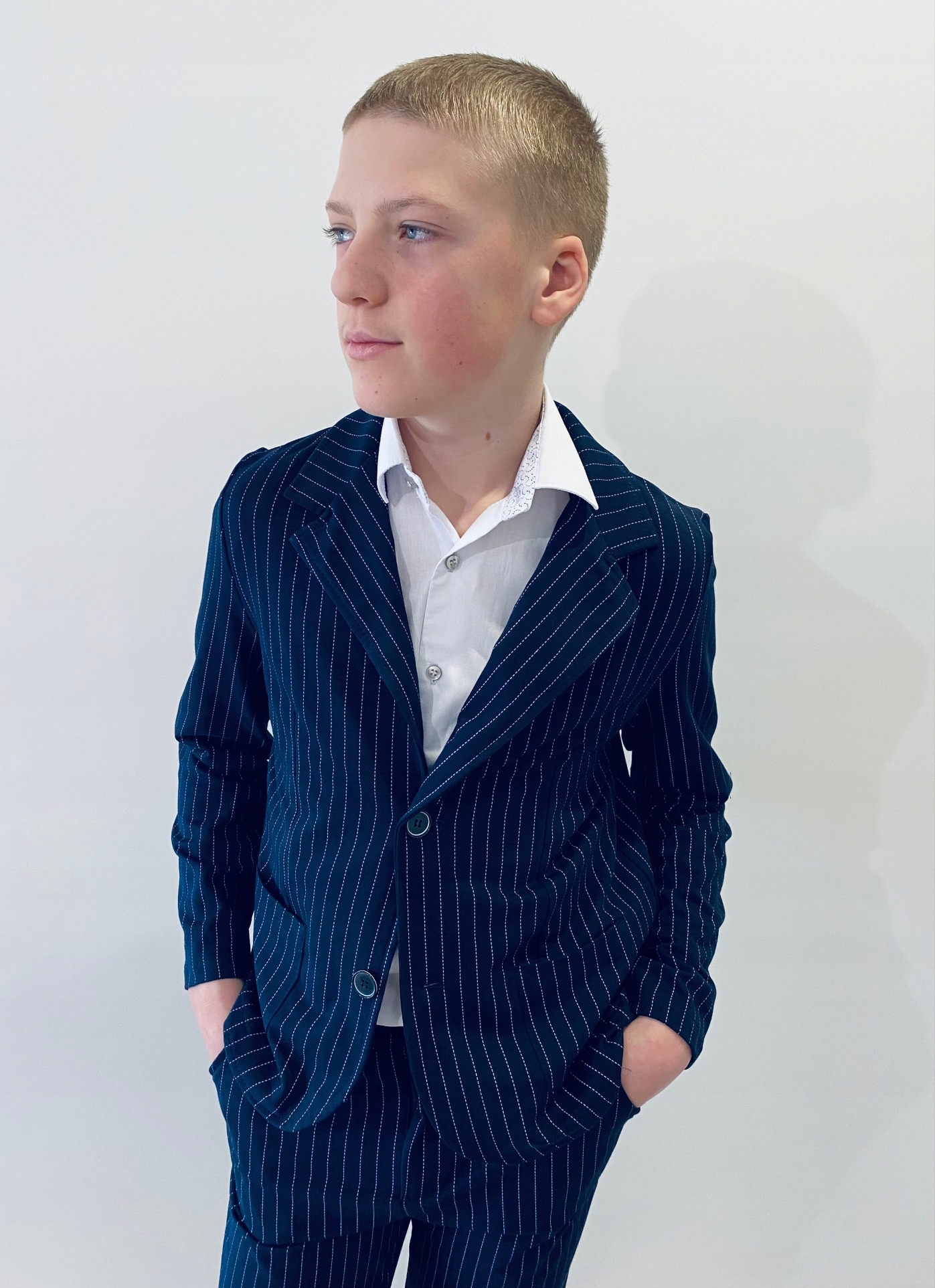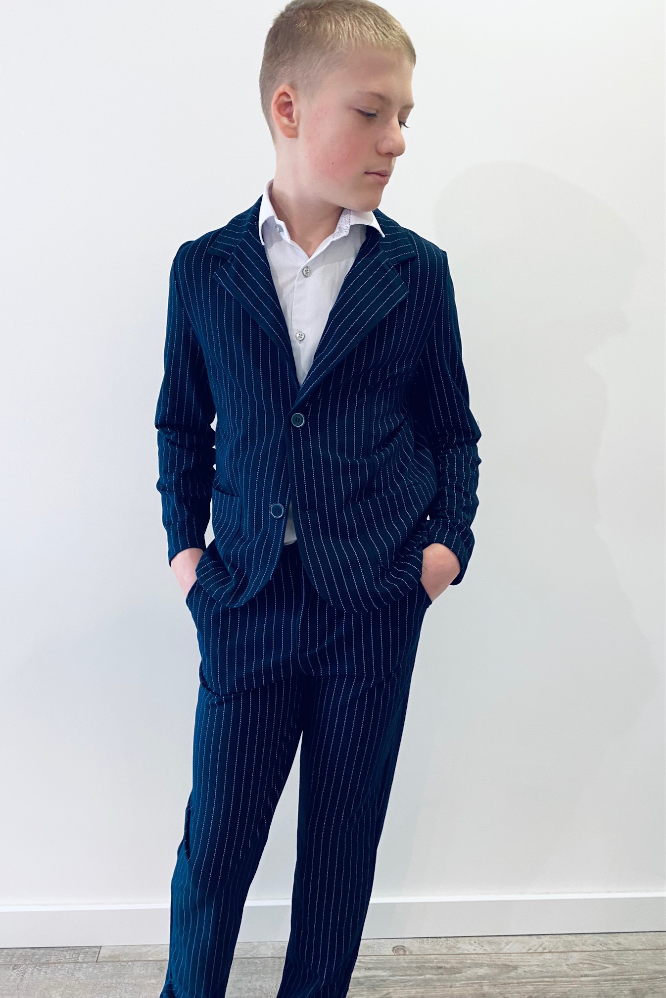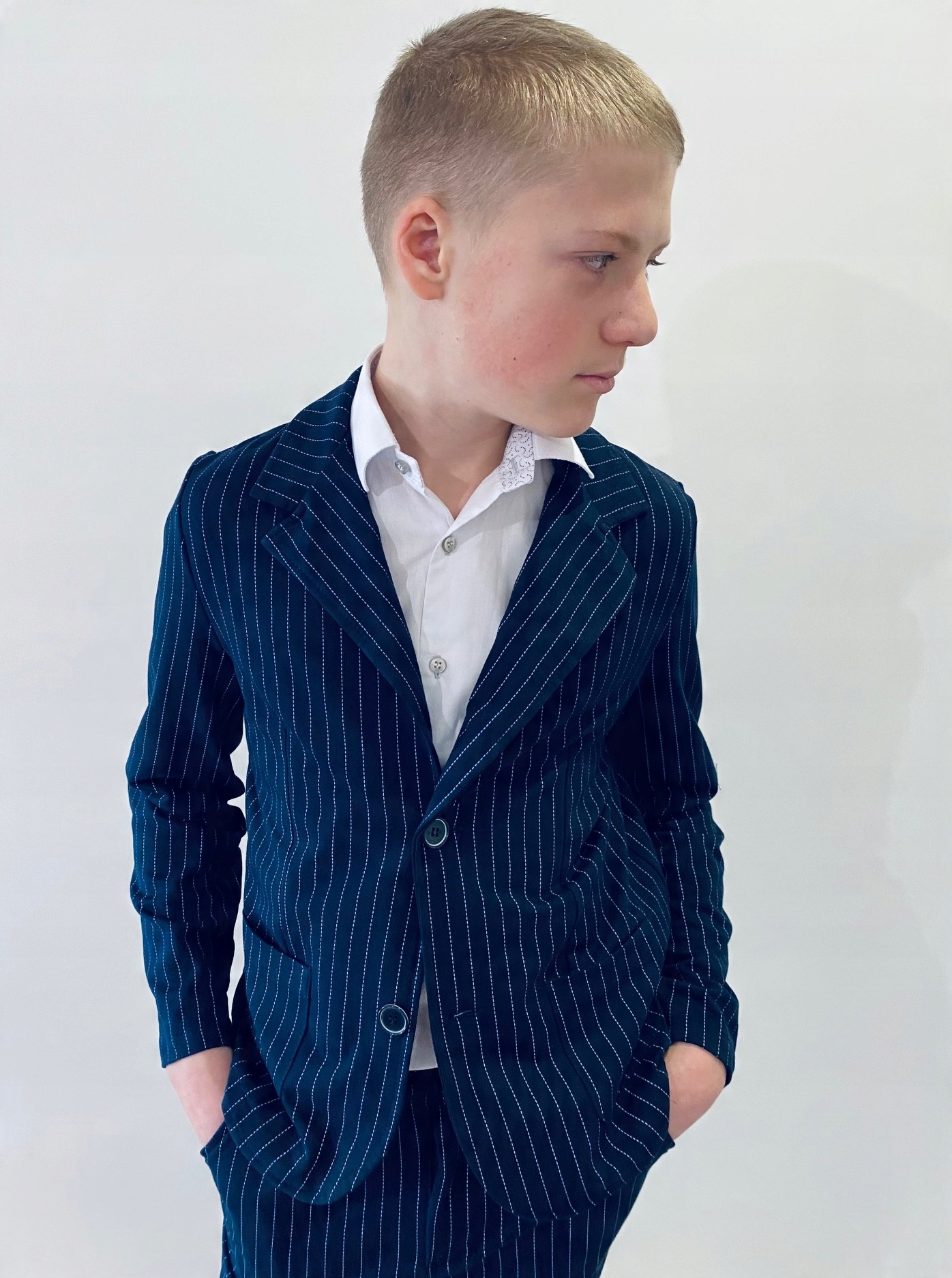 Костюм для хлопчика, темно-синій, в смужку, БЛЕЙЗЕР, брюки, 164 NEW