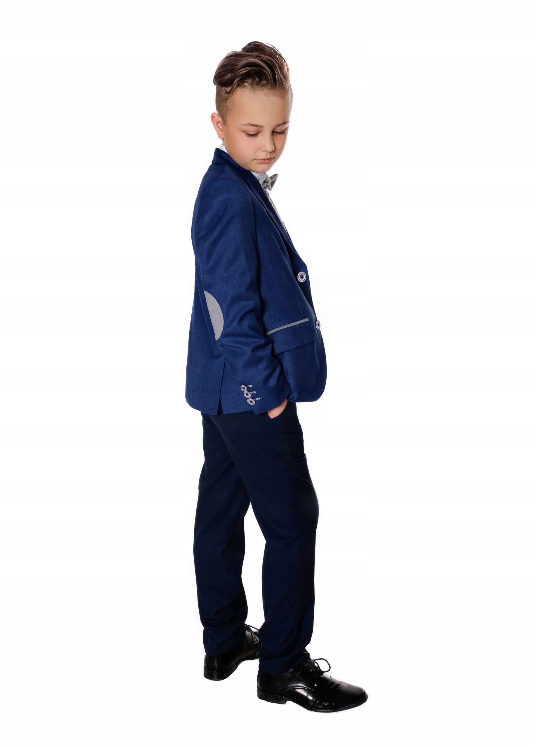 Костюм для мальчика от Lorento - польского производителя, молодежный, двухсекционный, куртка с темно-синими узорами и темно-синие брюки оригинально, очень оригинально, это это так называемый гармоничный комплект, то есть сочетание куртки и брюк разных цветов, такой комплект идеален и для других случаев, ведь можно сочетать пиджак с джинсами, а брюки с белой рубашкой. Это отличная база для многих стилей, все сшито как обычный костюм, карманы, подкладка, все детали очень проработаны, можно купить настоящий костюм для молодого человека от нас. Выбирайте современный смарт-кэжуал с Lorento