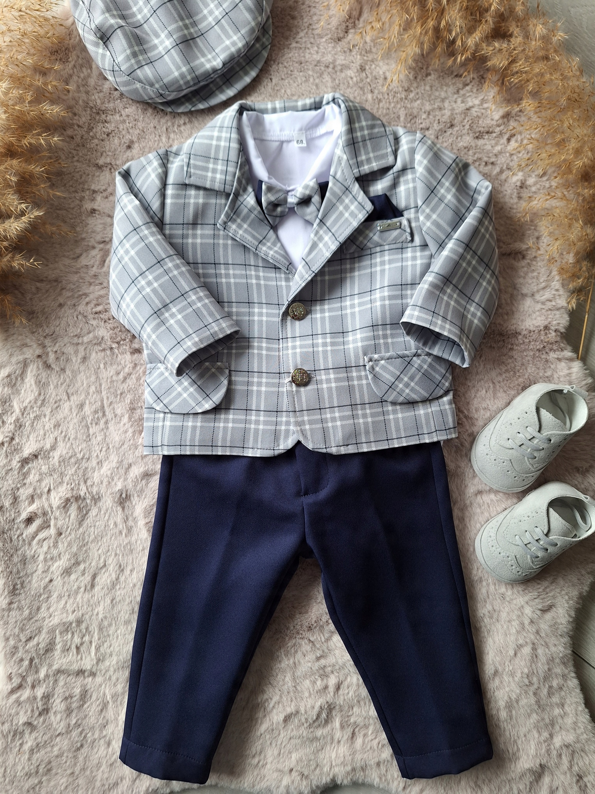 Костюм для хрещення для хлопчика в клітинку сіро-синій парадний комплект 62
