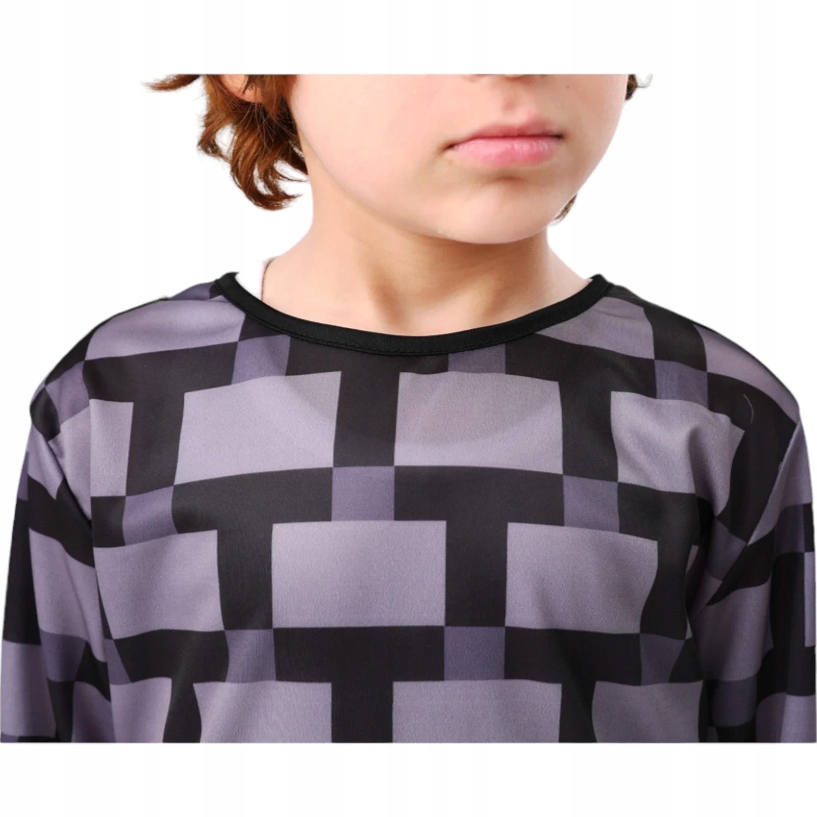Комбинезон Дракона в стиле Minecraft – черный комбинезон, украшенный серыми геометрическими узорами, напоминающими культовый пиксельный стиль Minecraft. Он идеально прилегает к телу, обеспечивая свободу движений во время игры.