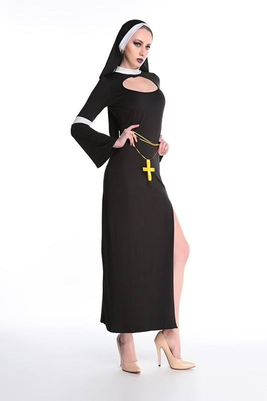 <р>1. ТоварРетро-горячий косплей на Хэллоуин M, L, модный черный костюм, женский сексуальный костюм монахини, виниловый длинный костюм для косплея на Хэллоуин