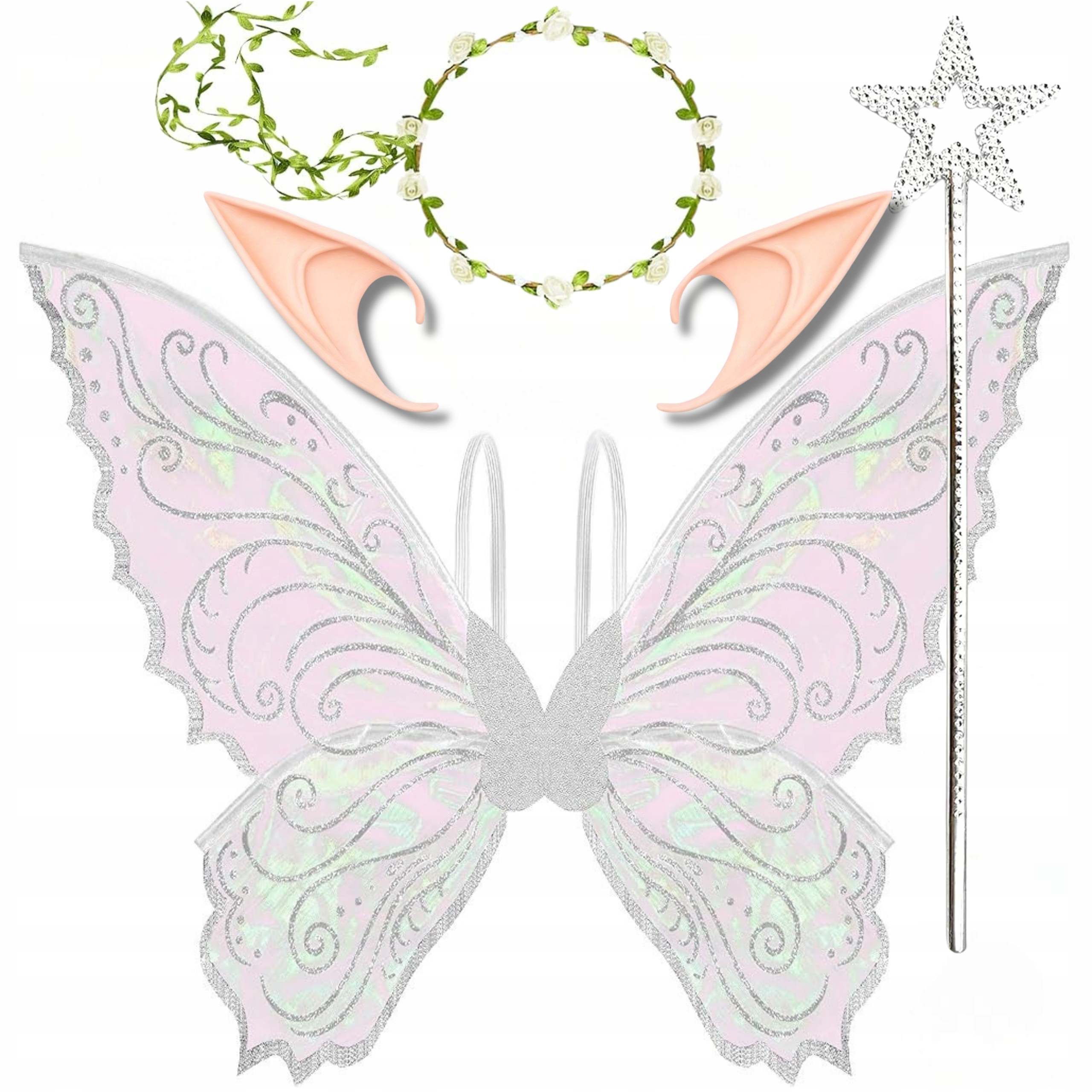 ✨ НАряд ЭЛЬФЬЕЙ ФЕИ С КРЫЛЬЯМИ + ЭЛЬФЬИМИ УШАМИ + ПАЛОЧКА + ВЕНОК – КОМПЛЕКТ 4 в 1 ✨