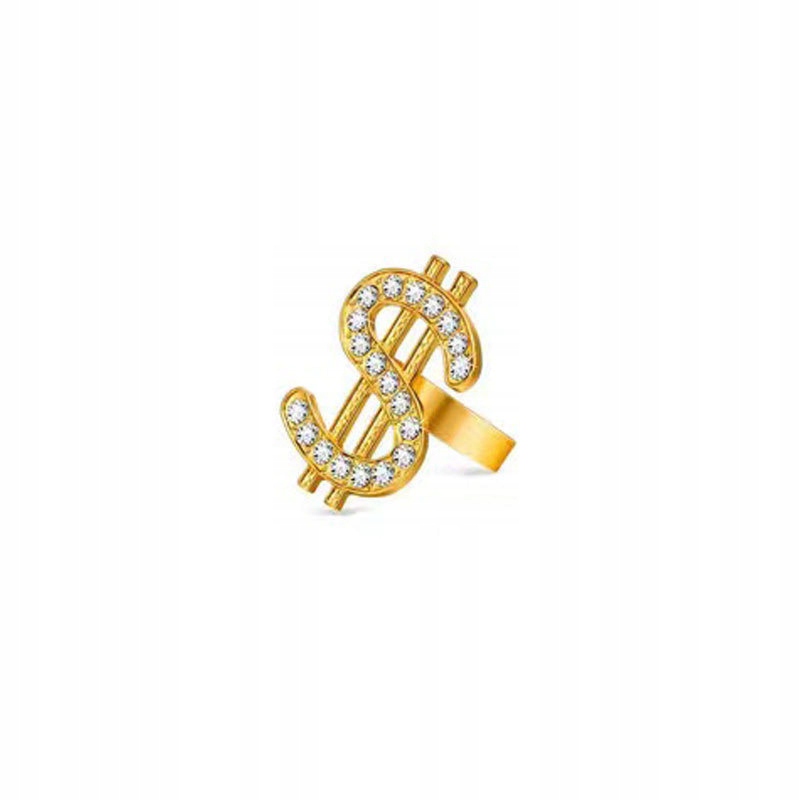 - 💍 Кольцо с символом $ – высота 3 см, ширина 2 см.