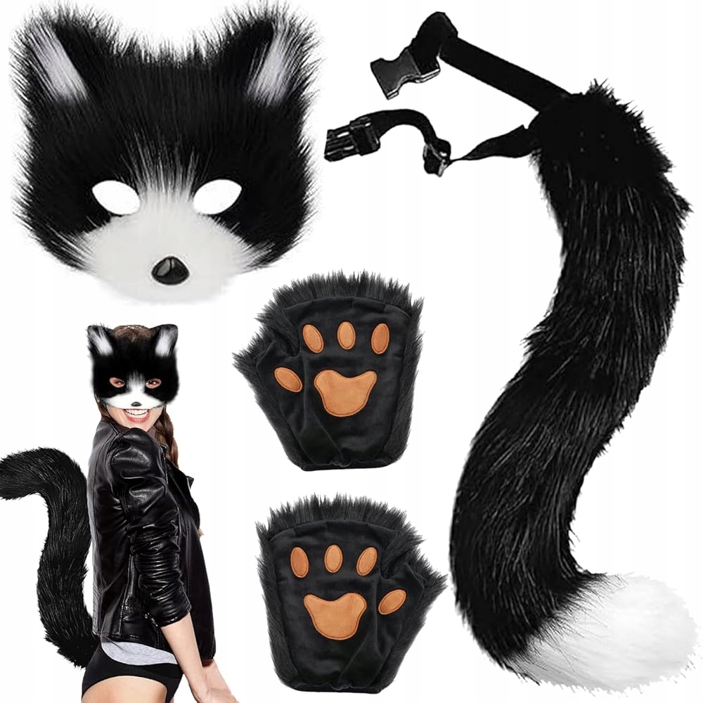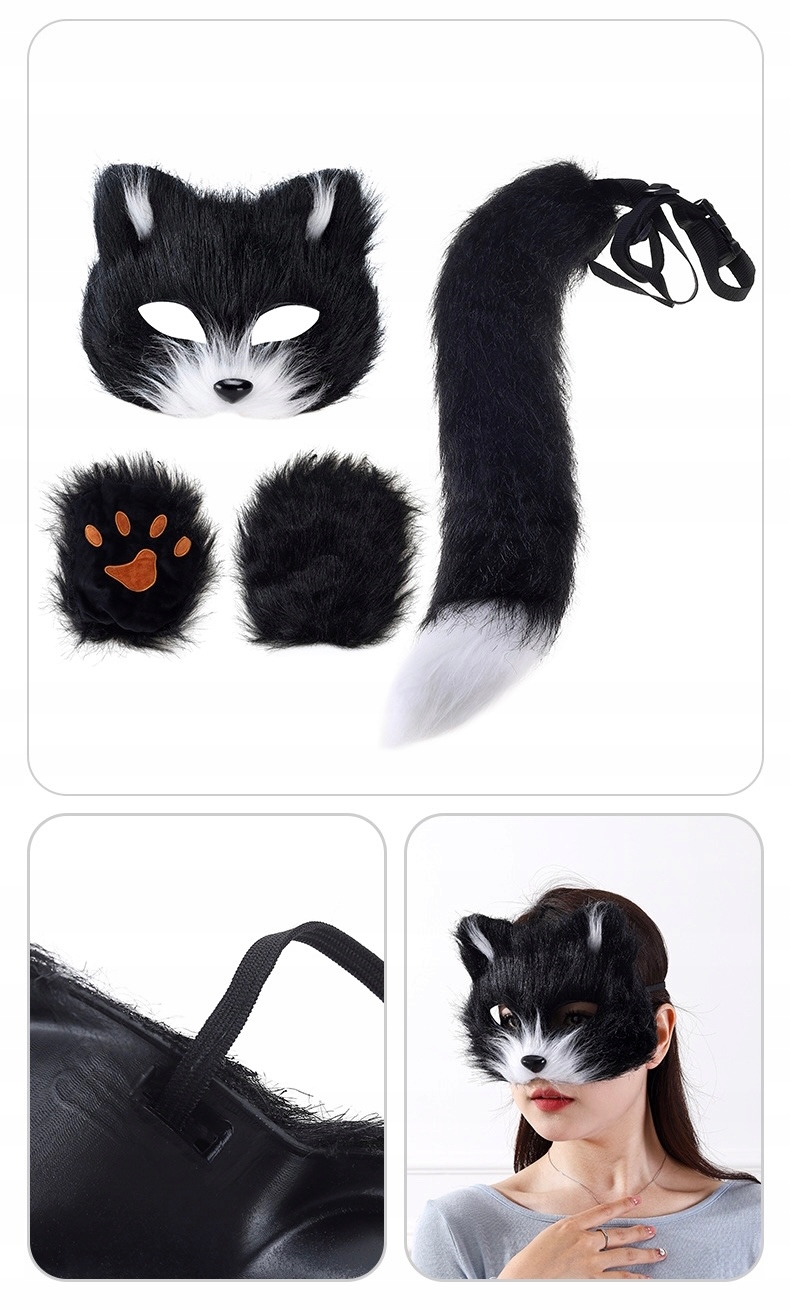 КОСТЮМ КОТА ЛИСИКИ ВОЛЧИЙ ХВОСТ УШИ МАСКА КОСТЮМ ВОЛКА КОТЕНОК ПУШИСТЫЙ ТЕРИАН M2
