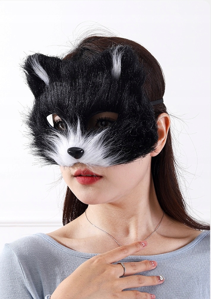 Уникальная маска в форме кошачьей мордочки из мягкого черно-белого меха – прекрасное дополнение к косплейному костюму, для тематической вечеринки или Хэллоуина.
