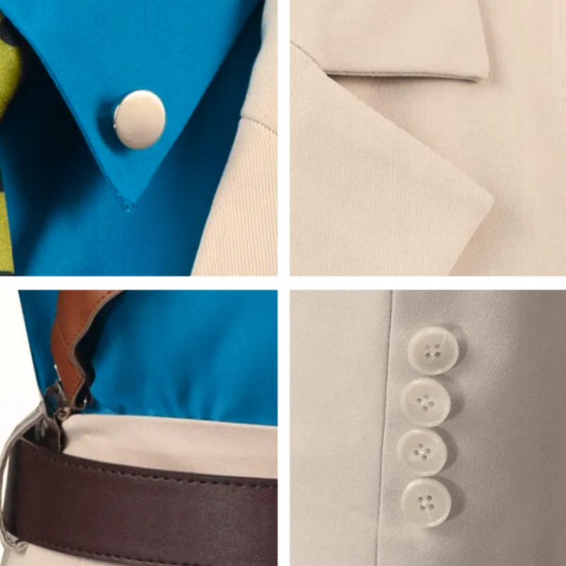 - Набор состоит из: курток, брюк, рубашек, галстук, брекетов для ремня и брюк,