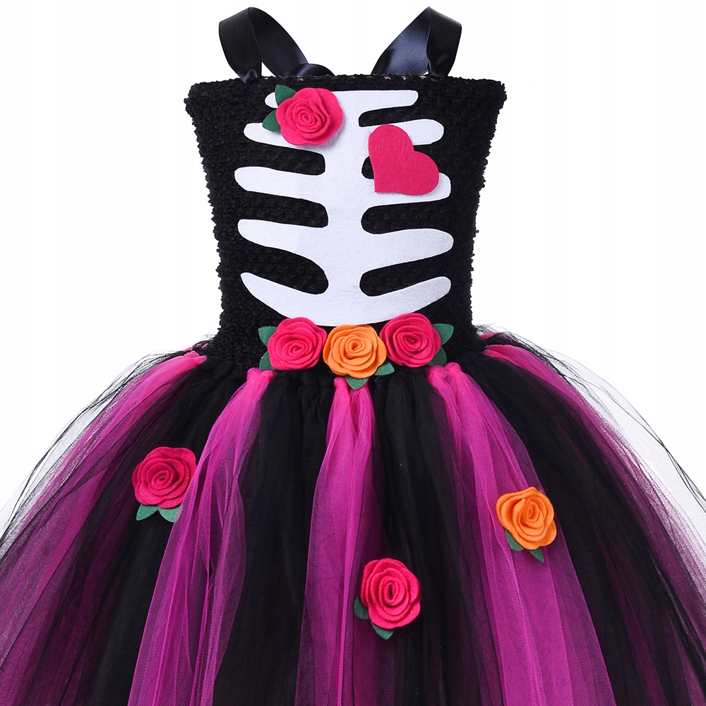 ⭐⭐⭐Это сказочное платье с мотивом скелета и цветочными акцентами придаст каждой маленькой леди необыкновенное хэллоуинское очарование.