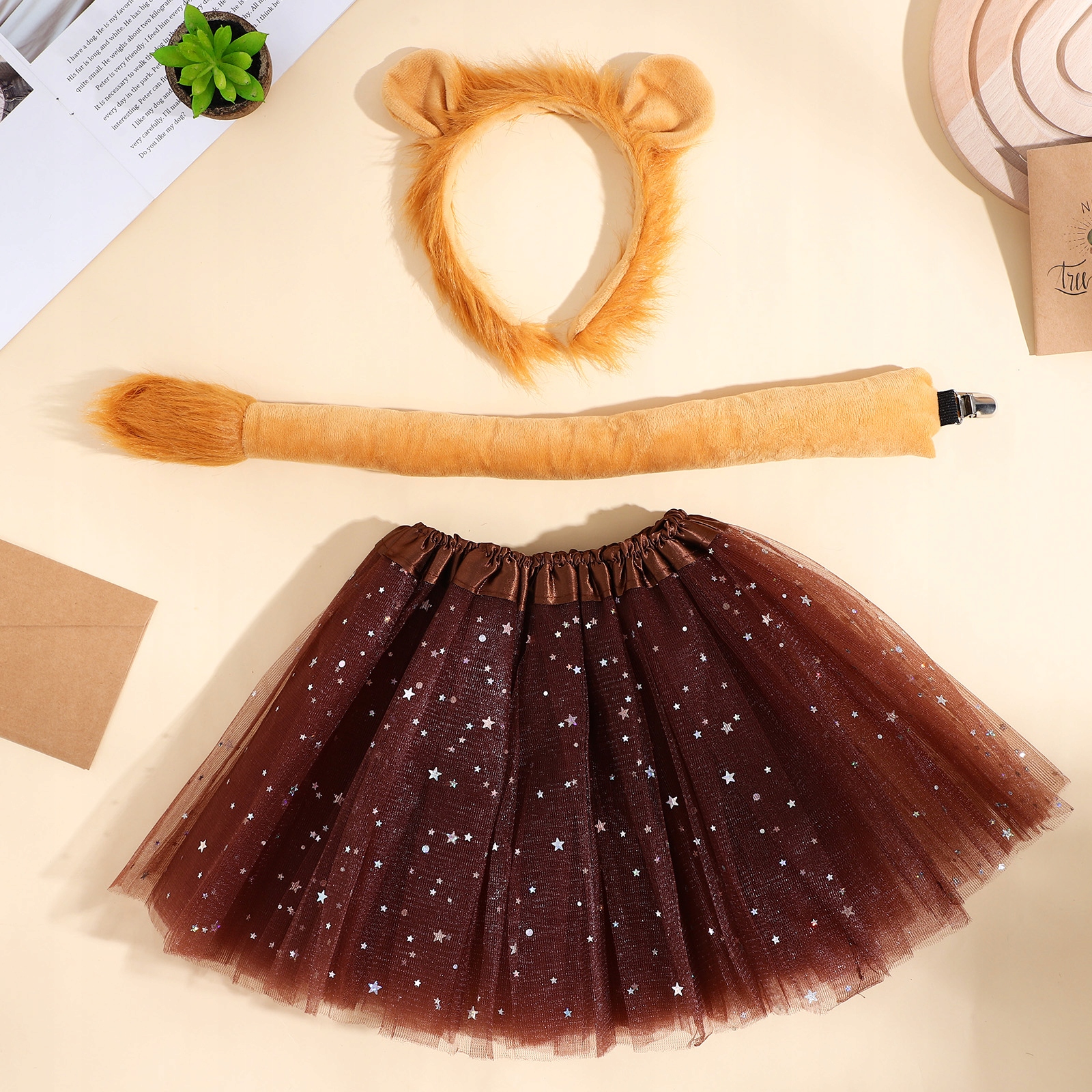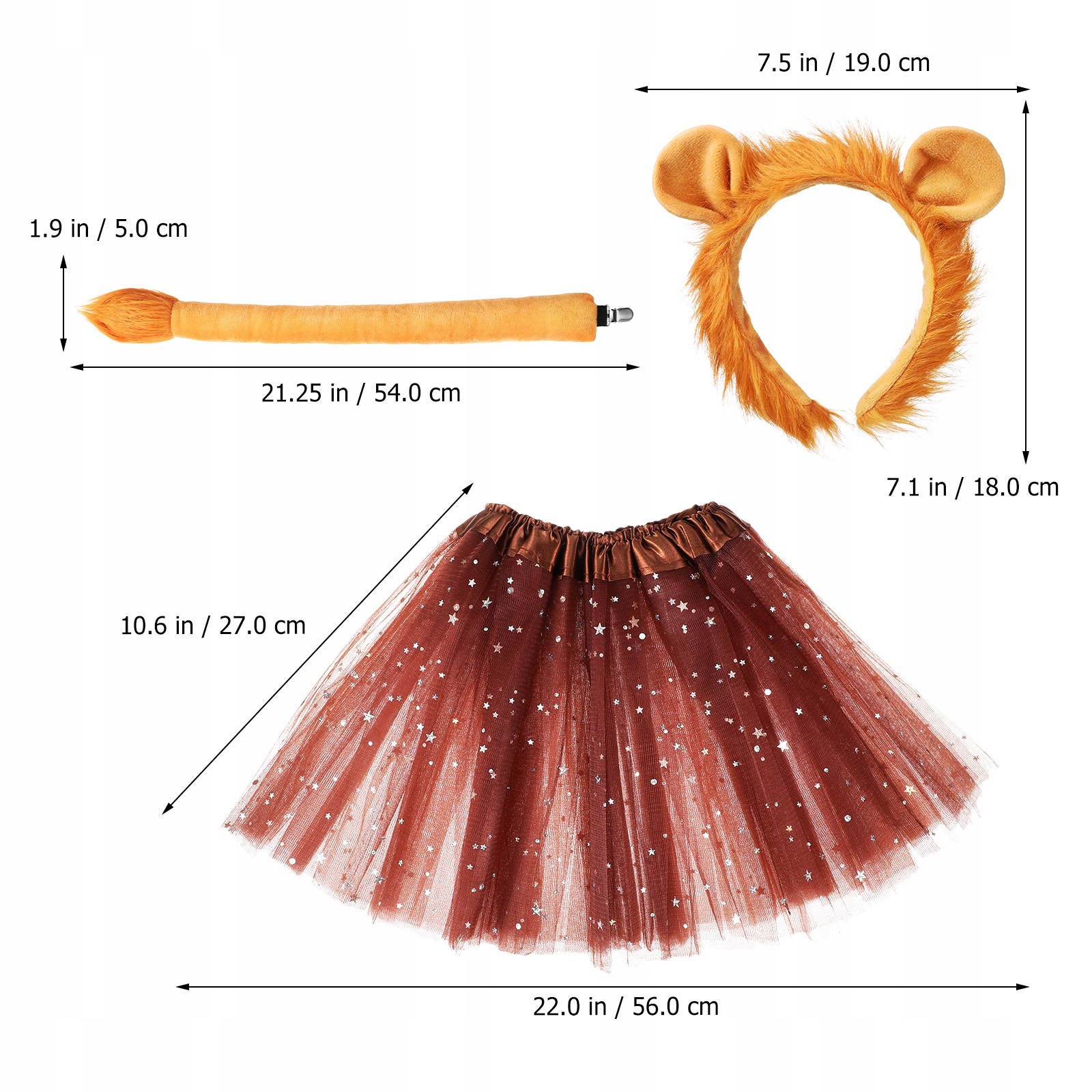 ✅ Аксессуары для костюма льва в основном изготавливаются из полиэфирных материалов, что обеспечивает комфорт и долговечность. Короткая юбка, повязка на голову в виде льва и набор хвостовых подставок придают образу забавности. Подходит для различных случаев, таких как Хэллоуин, тематические вечеринки, косплей и т. д.