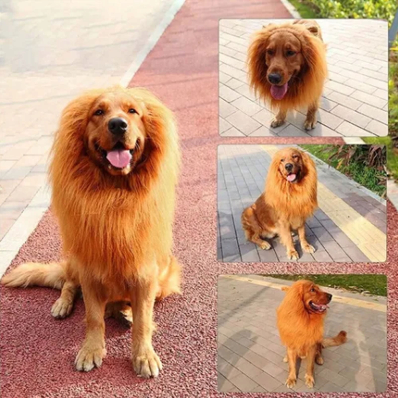 Костюм для собаки с львиной гривой. Блестящий регулируемый чехол на голову с львиной гривой для домашнего животного с хвостом для рождественской выставки собак на Хэллоуин.