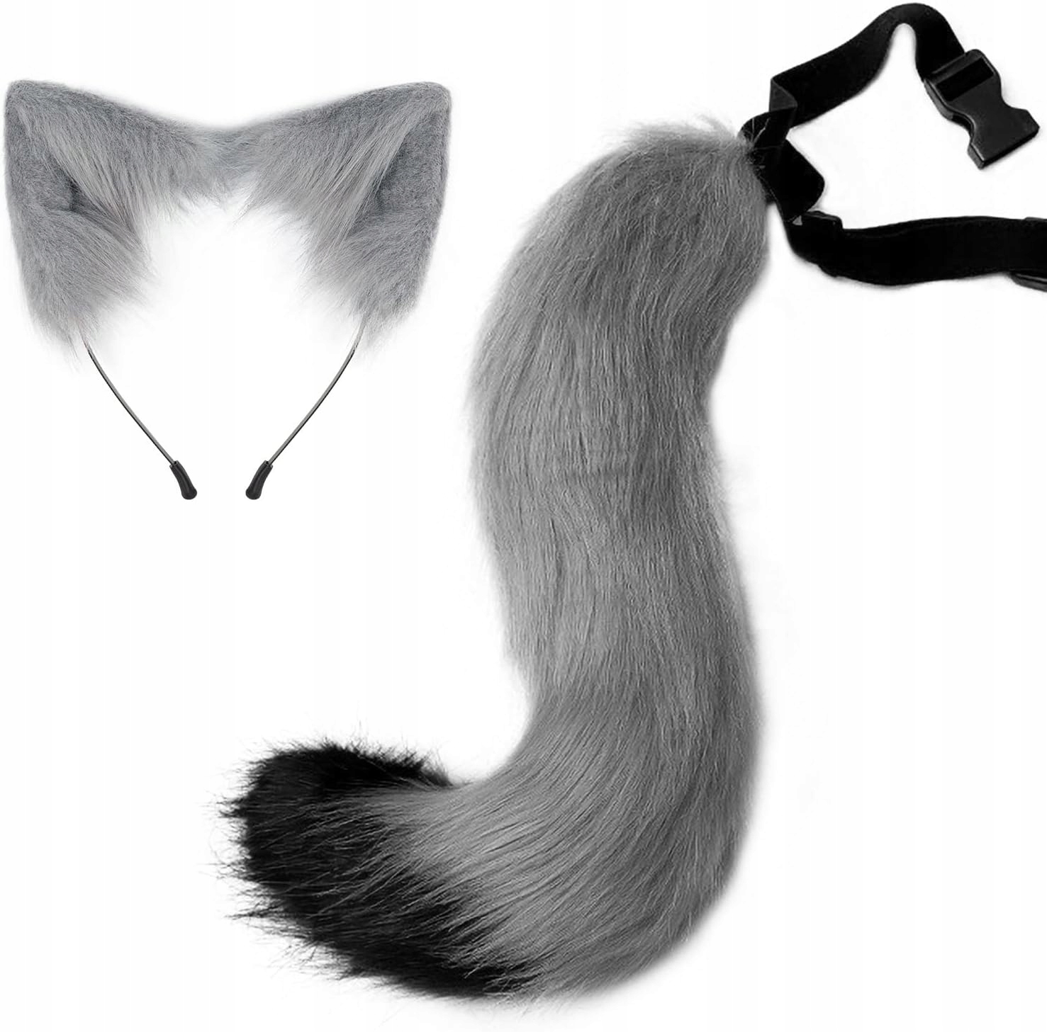 - Хвост из мягкого серого меха на регулируемом ремешке (с удобной застежкой-пряжкой)