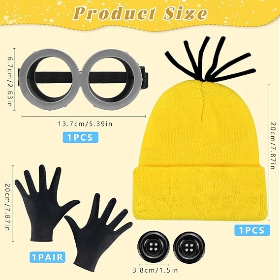 АКСЕССУАРЫ ДЛЯ КОСТЮМА МИНЬОНА ОЧКИ ШЛЯПА 7x КОСПЛЕЙ НА ХЭЛЛОУИН
