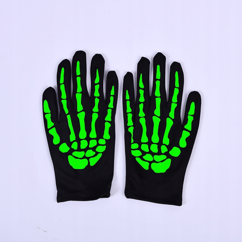 ✅ Перчатки - Черные перчатки завершают образ. внешний вид всего наряда. Гибкий материал хорошо ложится в руку ребенка, а светящийся в темноте флуоресцентный принт кости усиливает впечатление настоящего скелета. Это один из самых впечатляющих элементов набора, который производит огромное впечатление после наступления темноты.