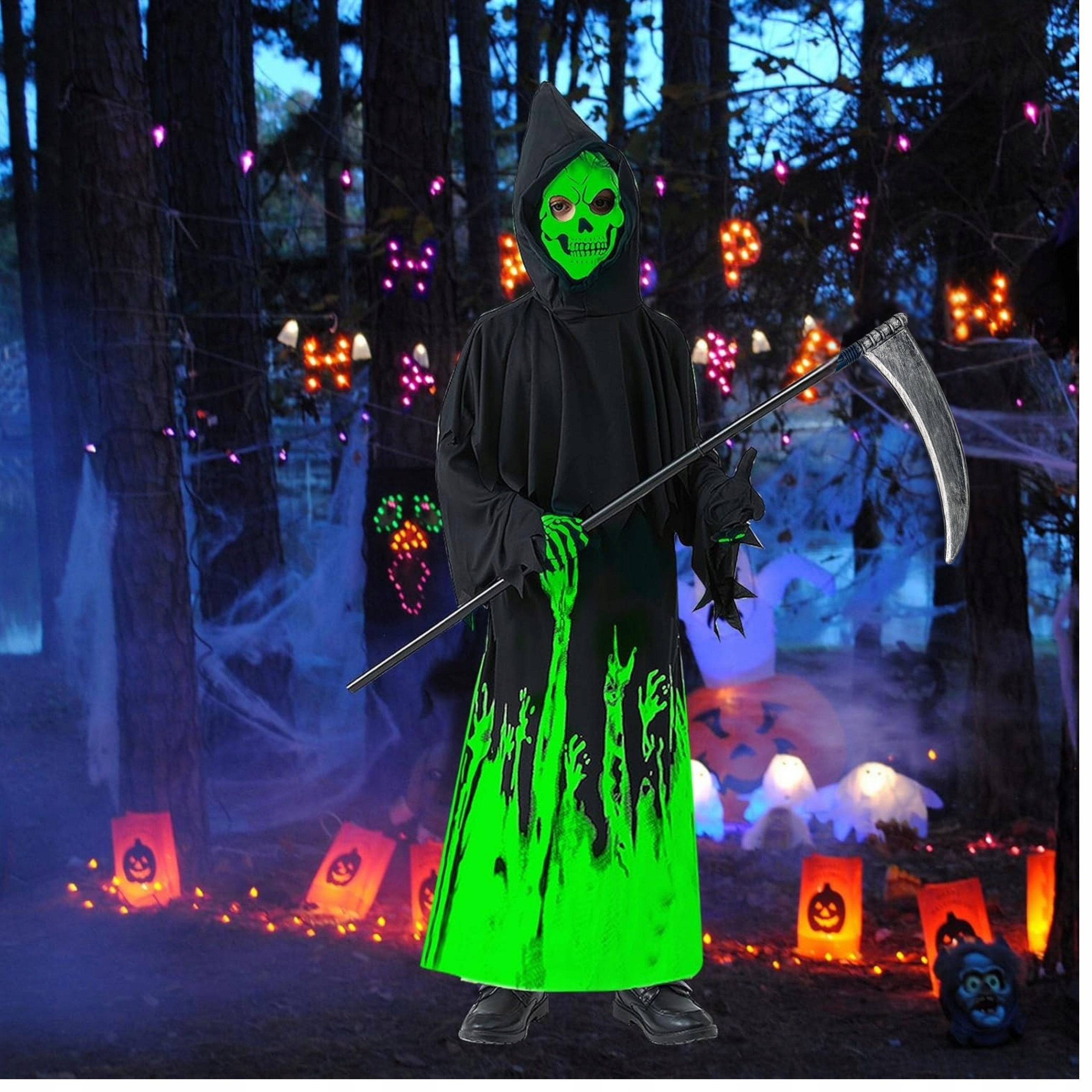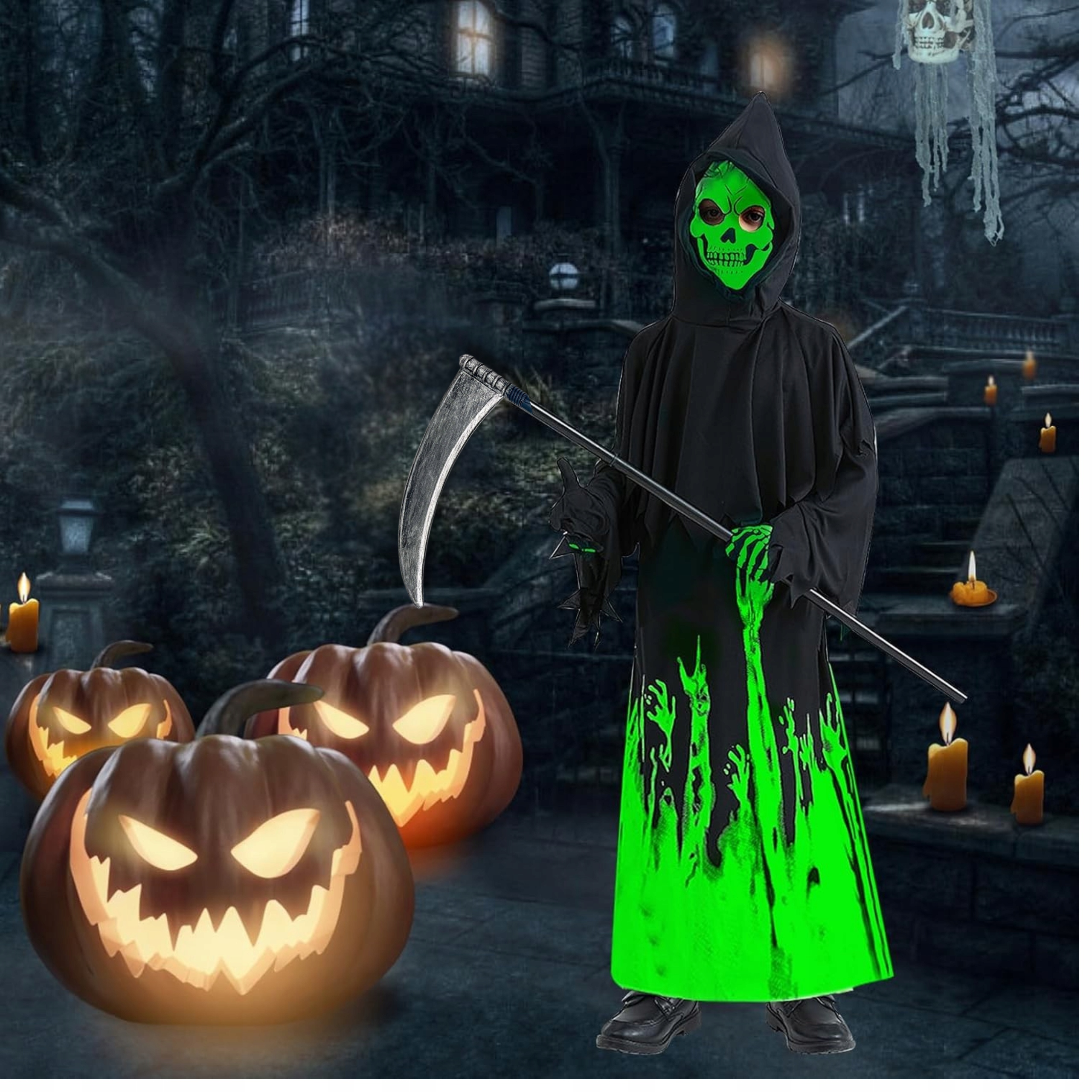 ☠СМЕРТЬ С СКАПОМ / Мрачный жнец / НАХИТИТЕЛЬ / ЗОМБИ / ПРИЗРАК СКЕЛЕТ - СВЕТЯЩИЙСЯ В ТЕМНОТЕ ХЭЛЛОУИН КОСТЮМ ДЛЯ ДЕТЕЙ 🖤