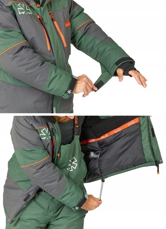 Костюм, защищающий от холода, ветра и осадков во время зимней рыбалки. Эргономичный дизайн этого костюма отличается от предыдущей модели Discovery. Он более свободный и не ограничивает движения. Комплект выполнен из мембранного материала двух цветов - серого и нежно-зеленого, все швы тщательно проклеены.