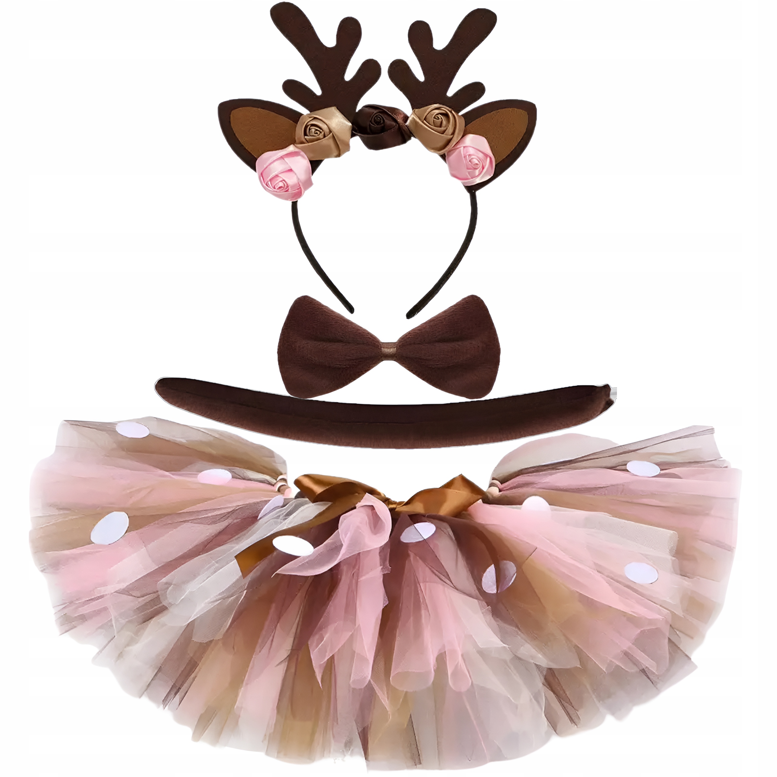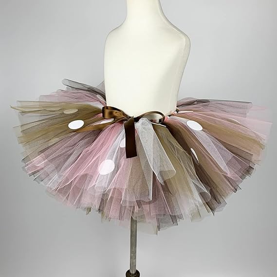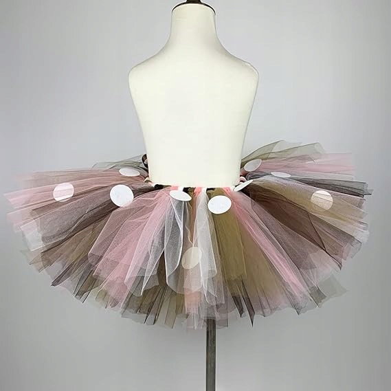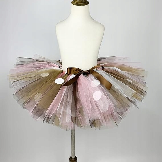 ✅ Юбка: состоит из трех слоев фатина, что делает ее распростертой. b>, оно прекрасно подходит. Тюль нескольких оттенков коричневого цвета, украшенный снаружи белыми точками. Юбка на резинке, декоративный бантик на талии.