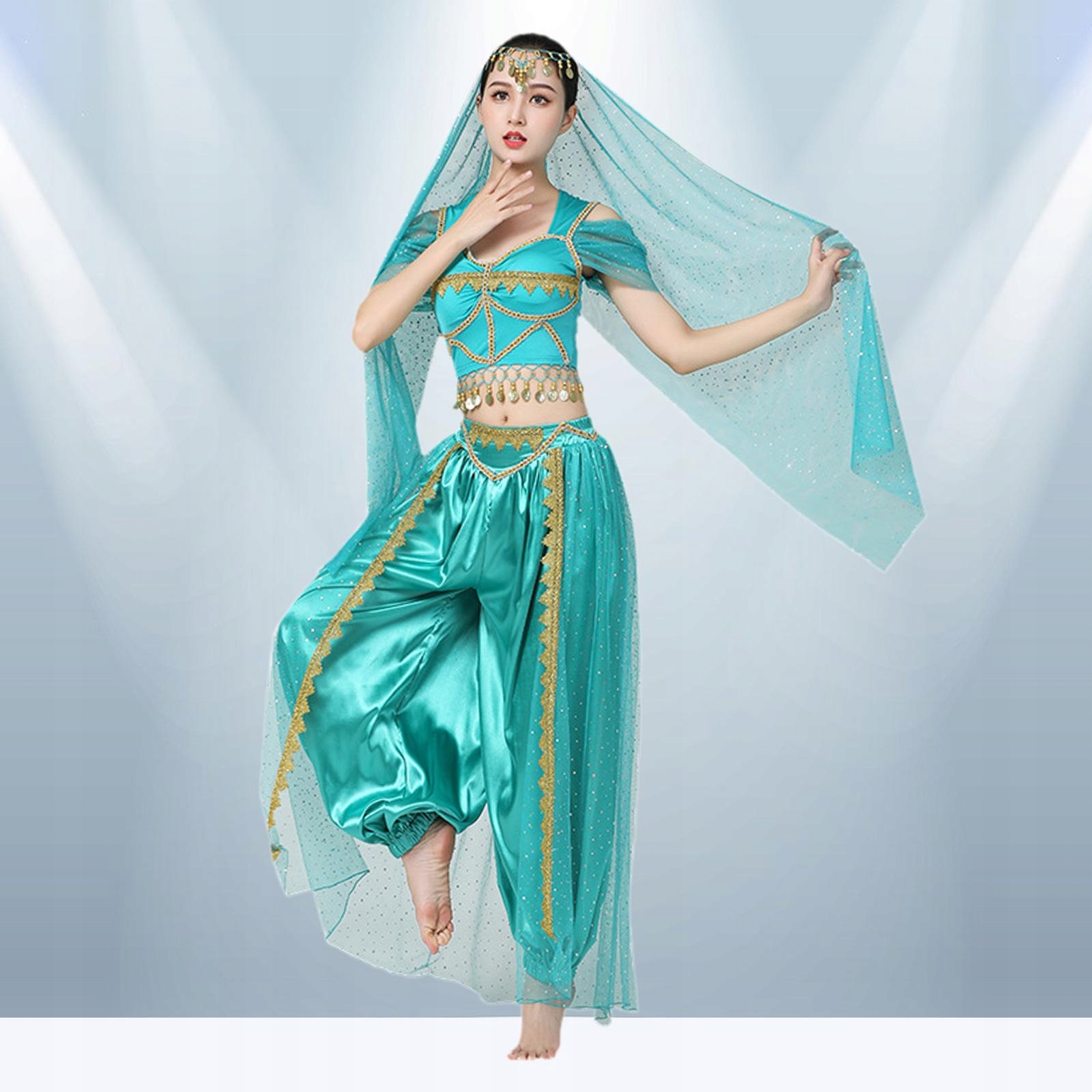 Костюм принцессы, комплект костюмов для танца живота, экзотический танец L, синий, зеленый