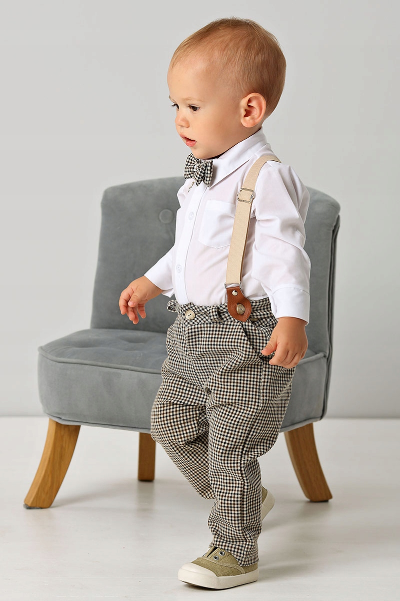 2. Клетчатые брюки для мальчика, узкие. Петли на пуговицах спереди на талии для регулировки окружности.
