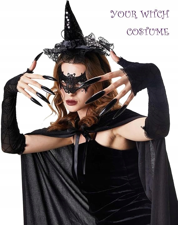 ✨ Эффективные ногти: В набор входят наклеенные ногти, которые идеально имитируют длинные острые когти ведьмы. Они придают рукам четкость и являются устрашающей, но стильной деталью.