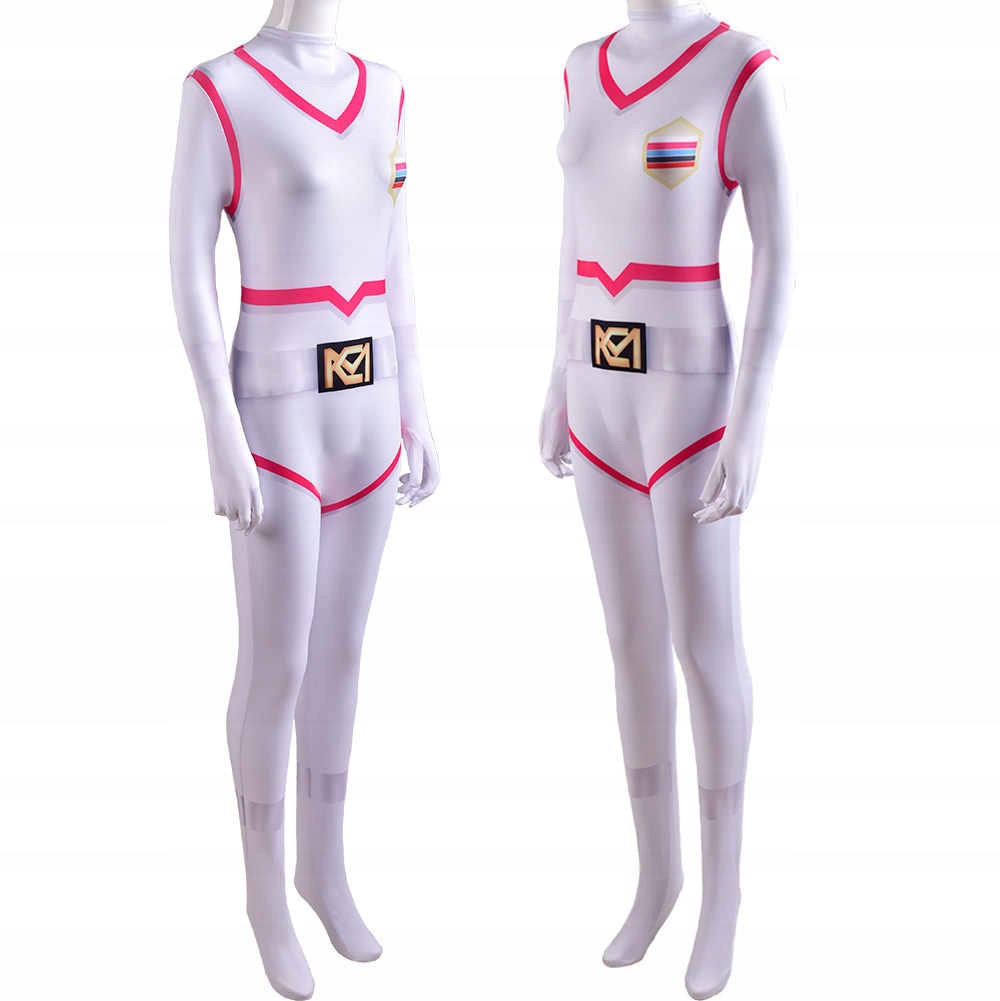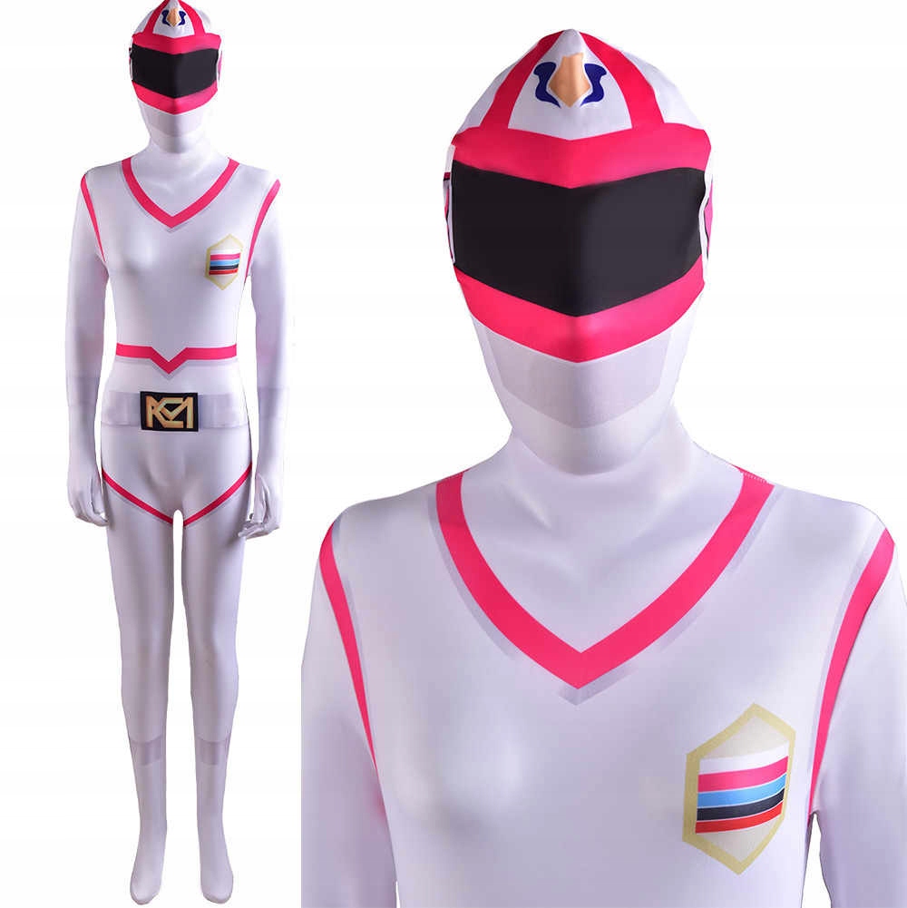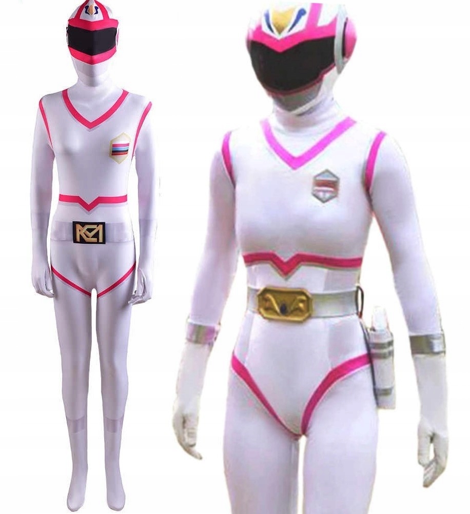 Цельный Костюм Alyssa Enrile белого цвета с розовыми элементами. Хорошо сшит, слегка эластичен, застегивается на молнию. Благодаря нашему предложению вы станете главным героем Power Rangers.