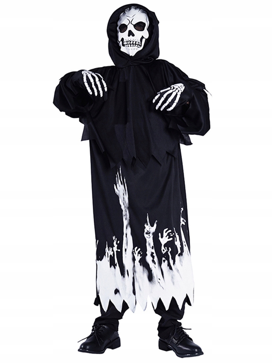 КОСТЮМ СМЕРТИ НА ХЭЛЛОУИН СО СЦЕНАРИЯМИ КОСТЮМ ПРИЗРАКА СМЕРТИ СКЕЛЕТ 134-140