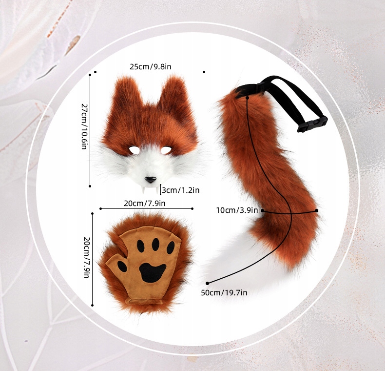 КОСТЮМ ЛИСЫ ВОЛКА ХВОСТ КОШКИ МАСКА ЛАПЫ ЛИСА БЕЛКА КОТ FURRY THERIAN BB