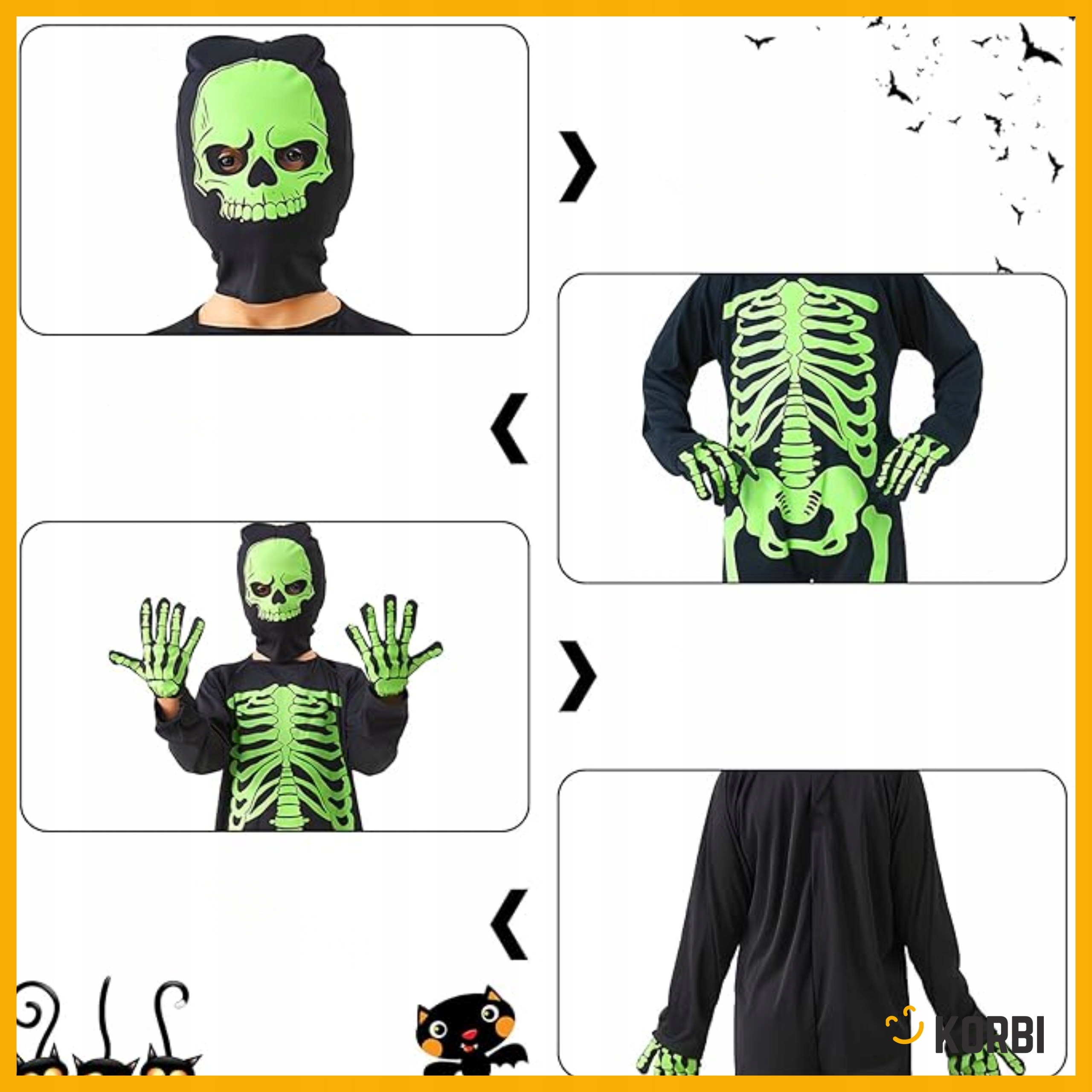 ✅Мрачный и в то же время эффектный костюм для самых маленьких фанатов Хэллоуина! Светящийся в темноте костюм скелета – идеальная идея для игр на Хэллоуин, школьных костюмированных вечеринок или семейных вечеров в атмосфере ужасов. Благодаря флуоресцентным принтам костюм выглядит эффектно даже при выключенном свете – гарантируя эффектный эффект и выделяясь из толпы.