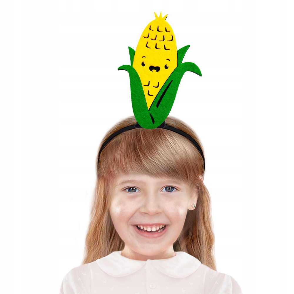 Повязка на голову с желто-зеленой улыбающейся кукурузой из фетра