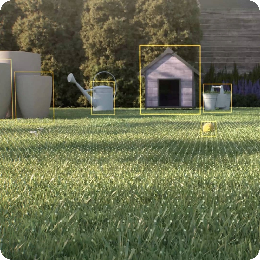 Робот видение распознает и обходит даже самые маленькие препятствия на газоне, включая игрушки, груды листьев и пограничные камни.