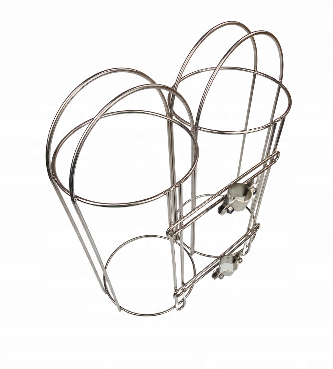 Двойная подкрылковая корзина из нержавеющей стали, привинченная к перилам.