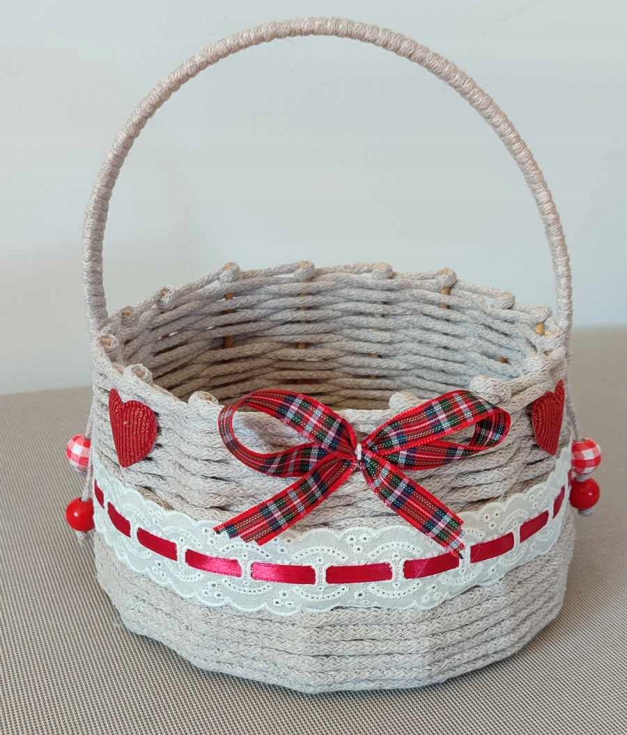 Koszyk z bawełnianego sznurka, wyplatany, Wielkanoc, wiosna