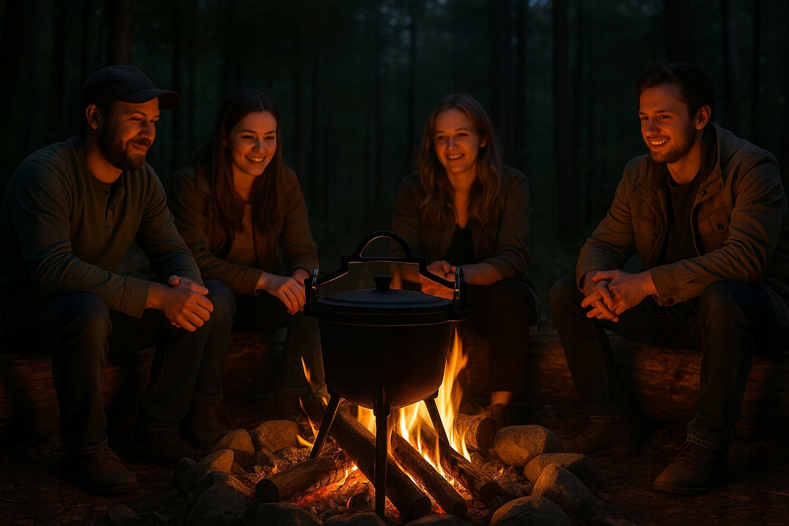 ✅Практичность — три ножки позволяют готовить, не висая над огнем.