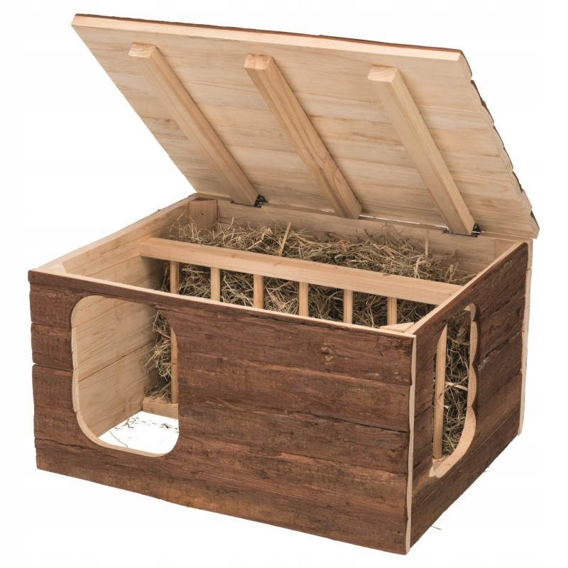 Деревянный домик с отделением для сена для кроликов и морских свинок.