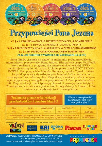 Нет времени для скуки в доме на скале! Его жители знают это хорошо: кукла Ренатки, мыши Таймек и Жабка Леопольд, которые изобретают веселье каждый день. Есть время для пения, танцев, историй, но иногда есть и трудные моменты- ссоры, ревность или недопонимание. К счастью, брат Ян, который может прогнать самые мрачные облака над головами наших фаворитов, приходит на помощь. Проблемные, а иногда и забавные ситуации напоминают притчи Евангелия, которые рассказывает религиоз. В половине часовых фильмов дети изучат одну из притров Господа Иисуса и его ссылке на современные времена.