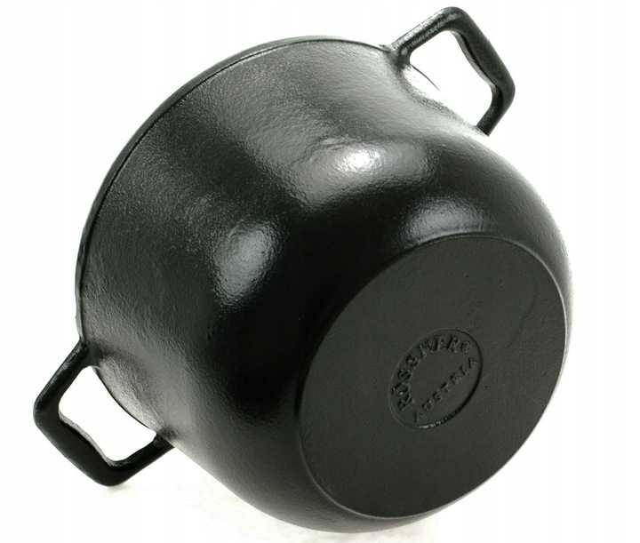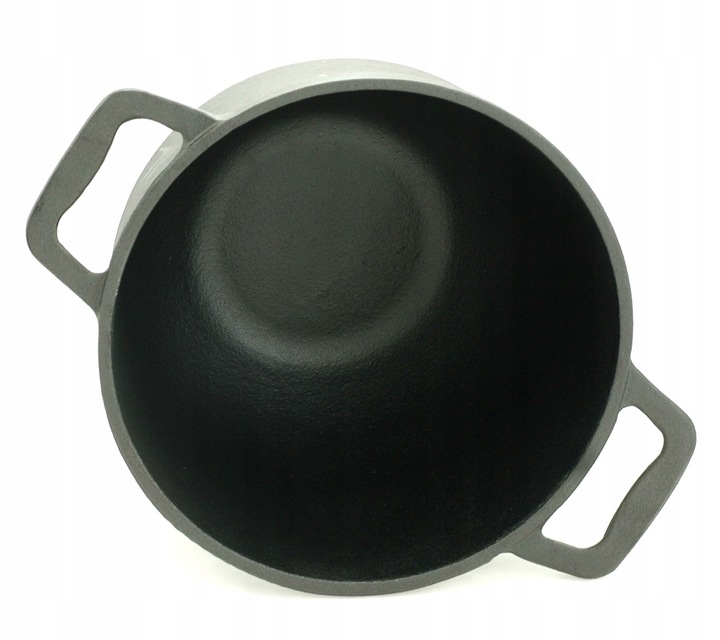 Кастрюля зачернена в заводских условиях, т.е. обожжена жиром, который обеспечивает пропитку чугуна и предотвращает прилипание продуктов.