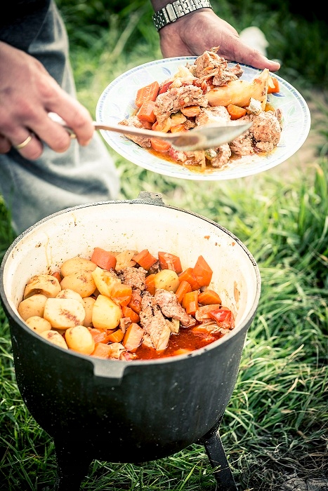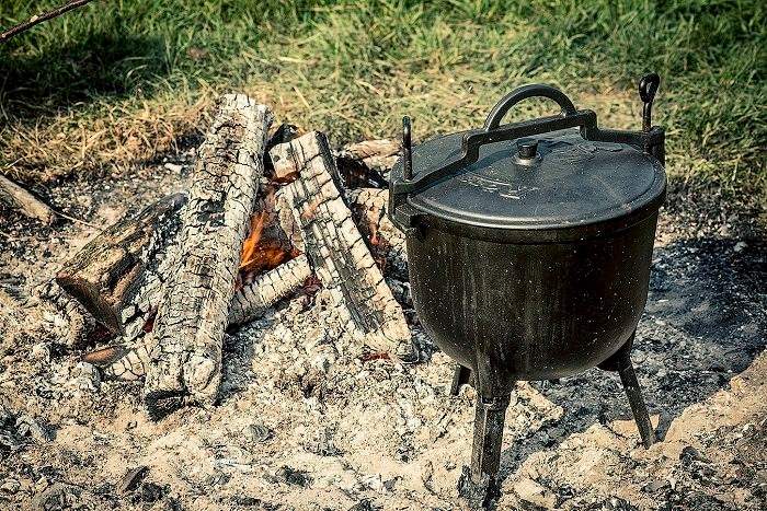 Казан оснащен тремя привинченными ножками. Ножки можно быстро открутить, чтобы повесить казан над огнем.