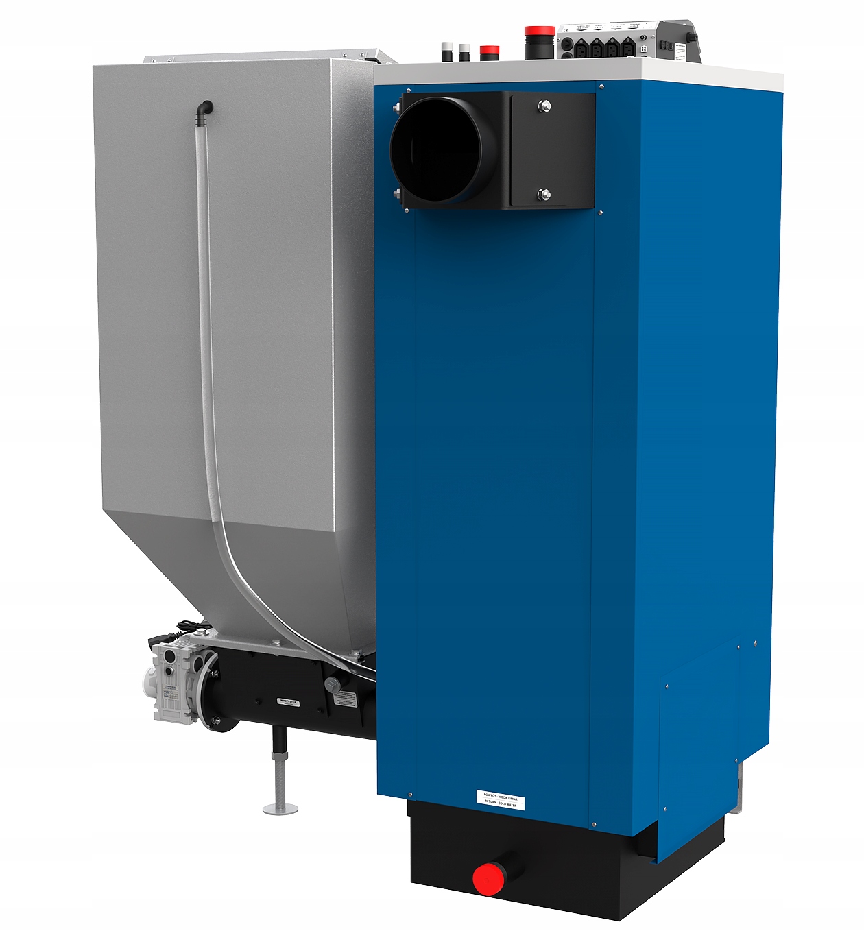 • подключение пожарного - в винтовой трубе имеется подключение системы подтопления, работающей независимо от котла регулятор и защищает от обратного удара по топливному баку; пожарный доступен в качестве дополнительного оборудования,