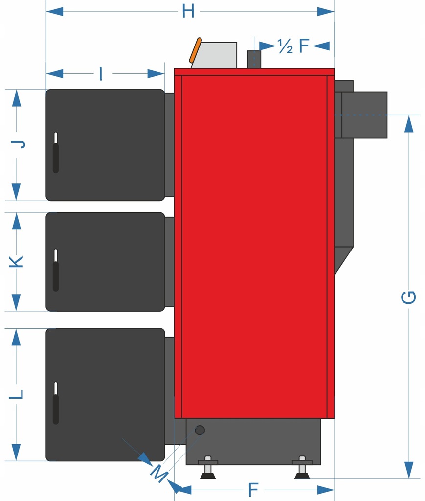 - Н - Дымоход котла изготавливается на заказ, вы сами решаете, каких размеров он должен быть, и насколько можно будет придвинуть котел к стене.