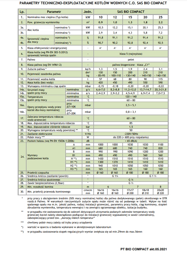 SAS BIO COMPACT – ХАРАКТЕРИСТИКИ КОТЛА