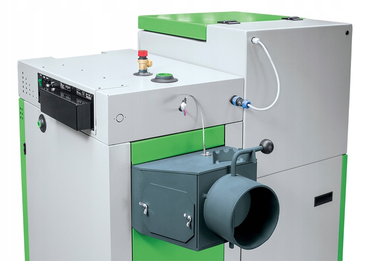 - Комплектация: контроллер (ST-555P), горелка SAS MULTI FLAME (горелка модуль управления работой, запальный подогреватель, механизм подвижных решеток, фотоэлемент - датчик пожара, датчик температуры питателя, вентилятор (система регулирования расхода воздуха - AIR FLOW CONTROL), термометр, предохранительный клапан, решетка для защиты от тлеющих углей, топливный бак с датчиком открытия заслонки, выхлоп датчик температуры газа, предохранительный ограничитель температуры СТБ, комплект регулировочных ножек, набор инструментов для обслуживания котла.