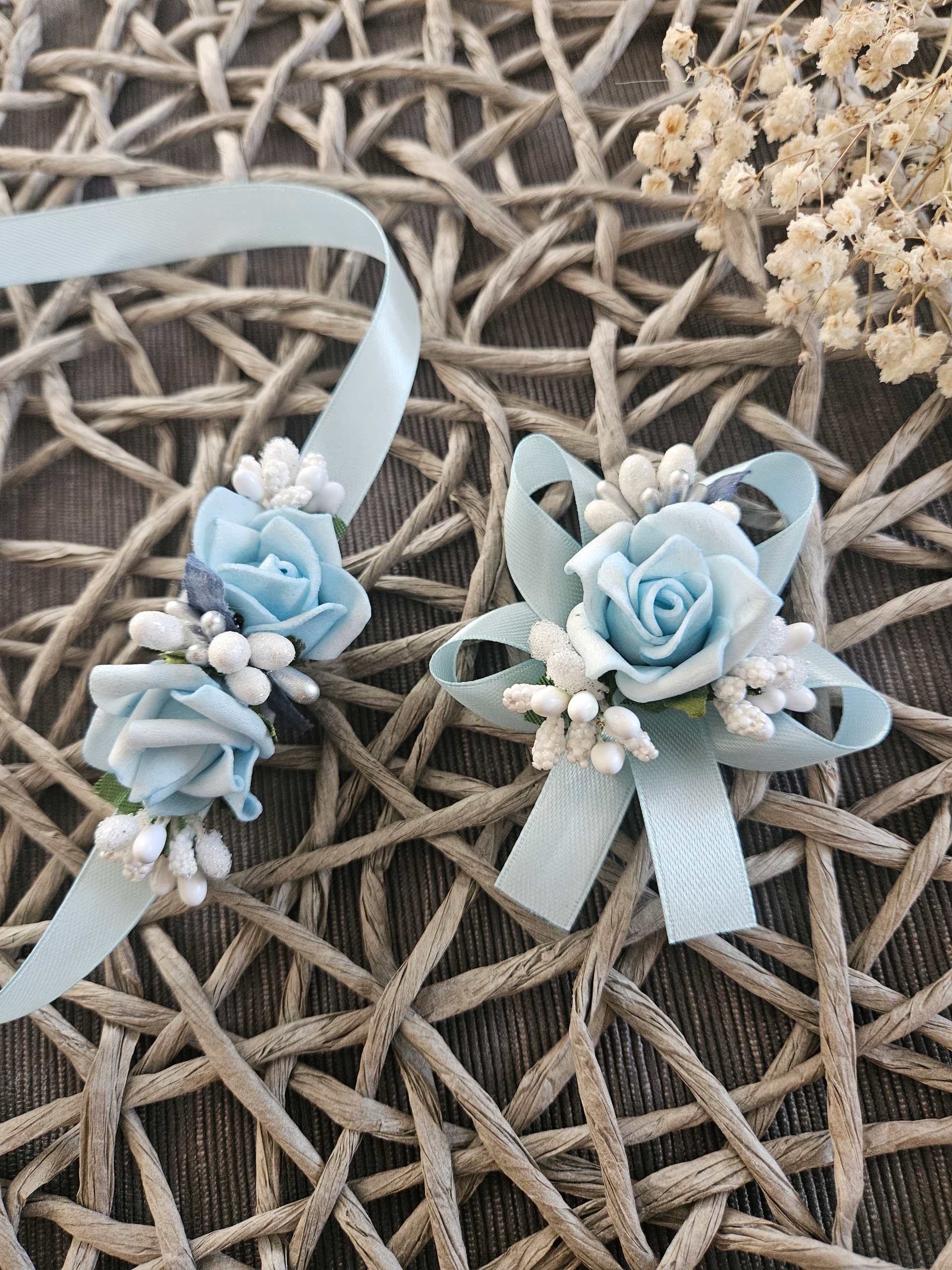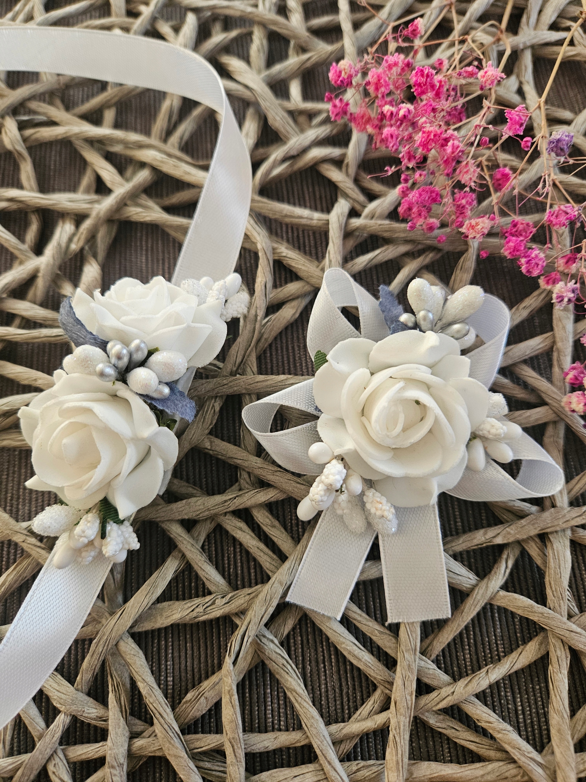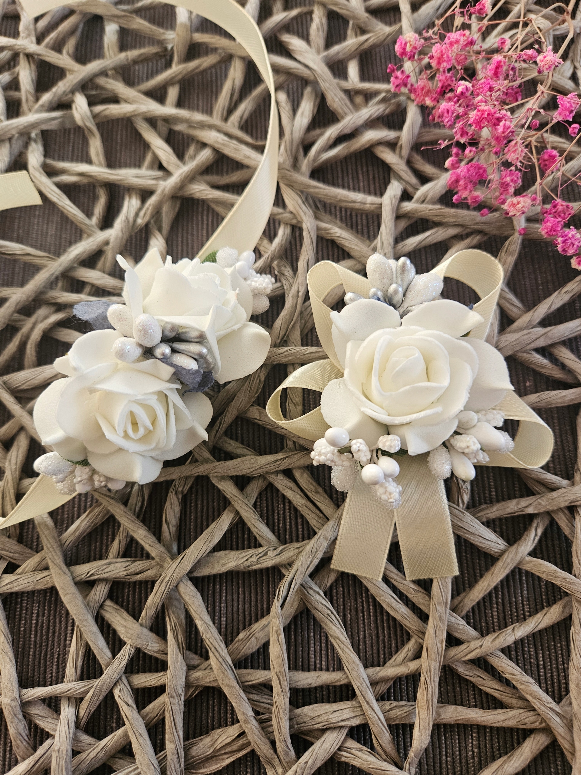 В женском варианте - лента-атлас, в мужском - сзади вделана булавка.