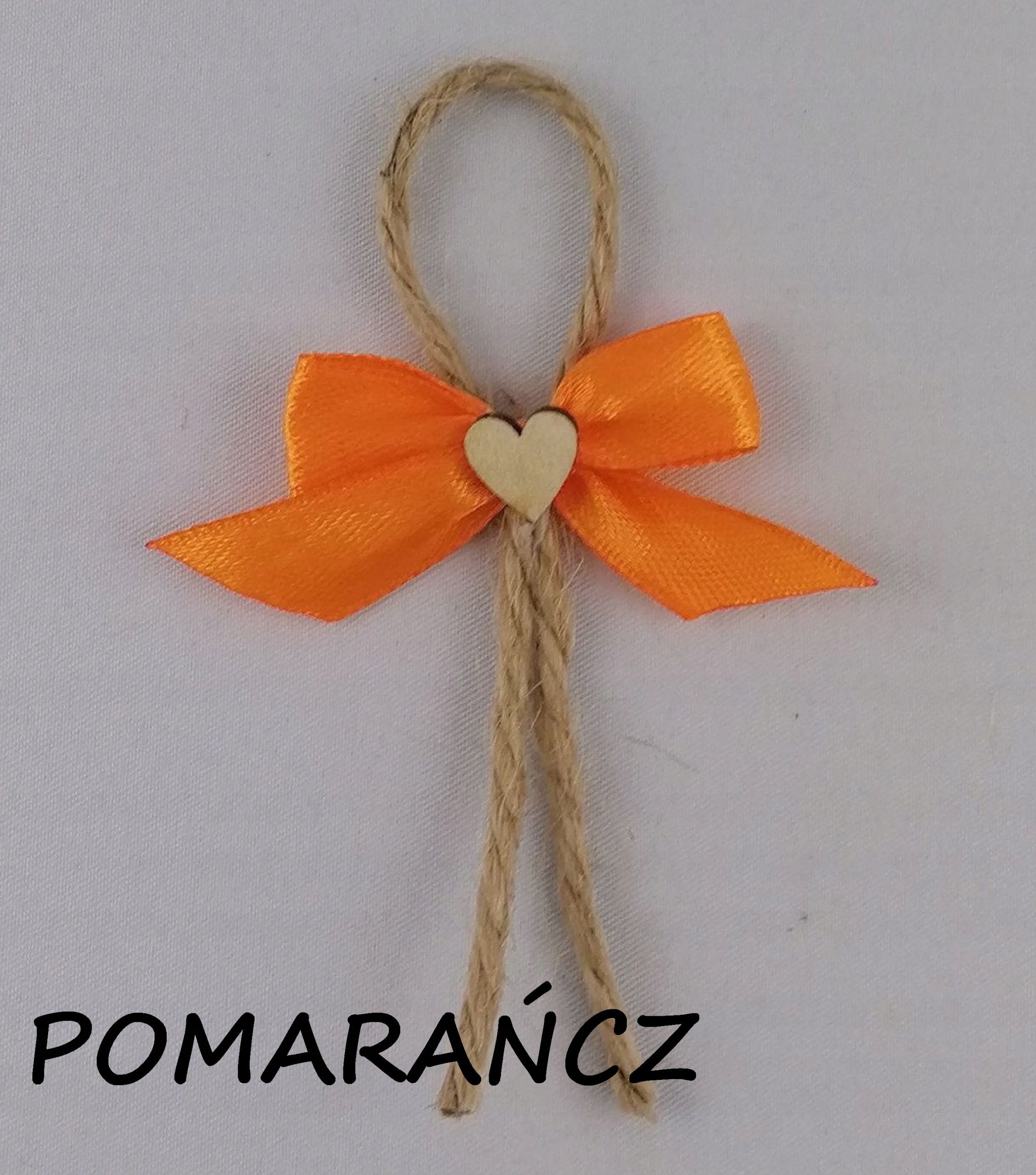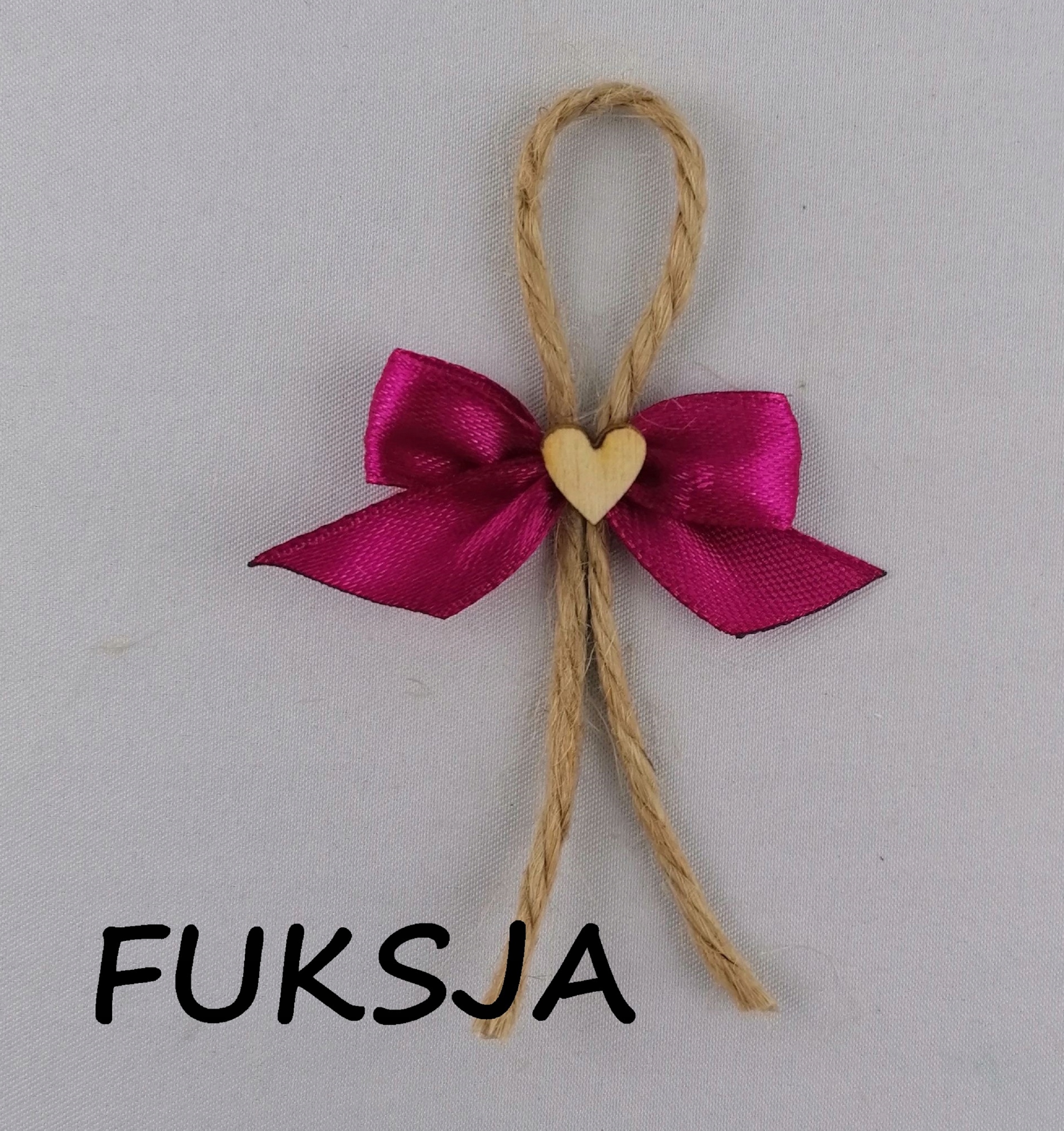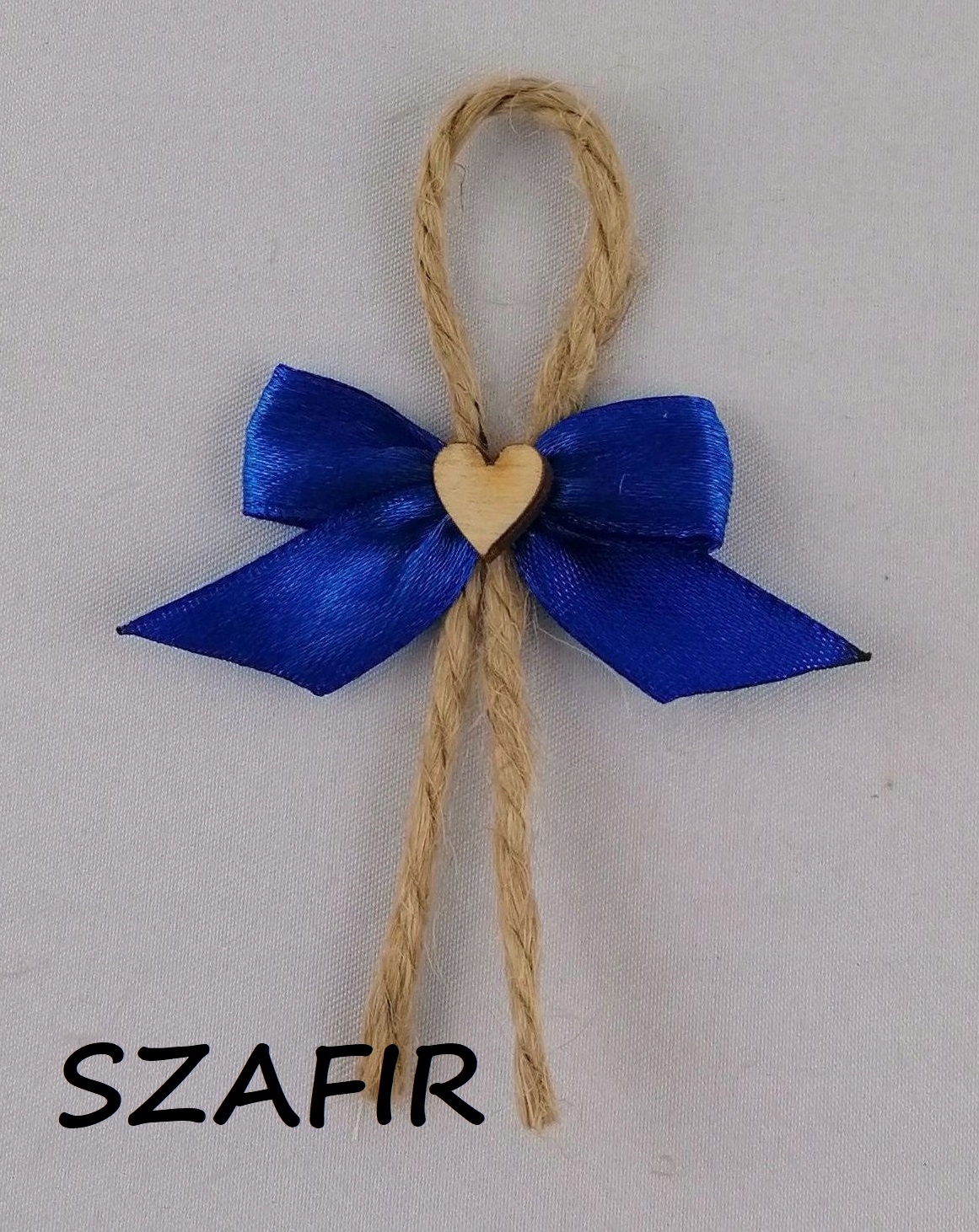 - Булавка состоит из бантика из атласа, прикрепленного к джутовой веревке и украшенного деревянной сердечко.